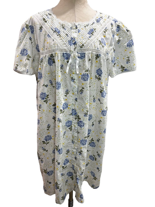 One Size Barbizon Women's Vintage 1980s Floral Nightgown Blue Rose