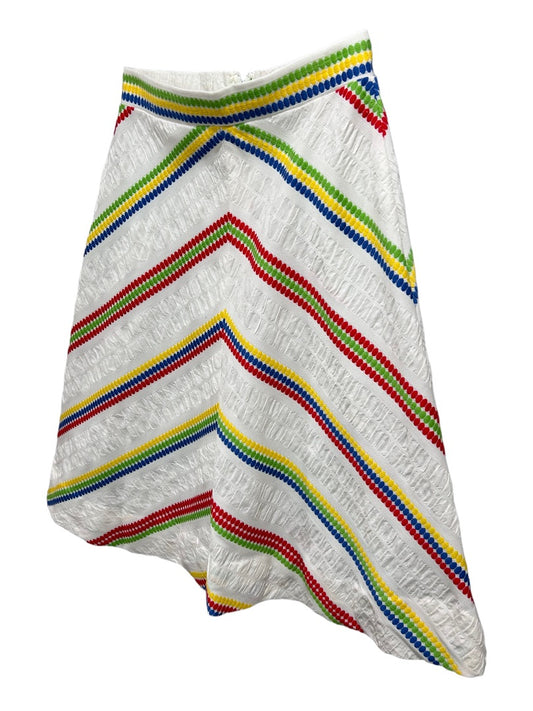 Kmart Vintage Rainbow Midi Skirt 1980s White A-Line Retro Fun