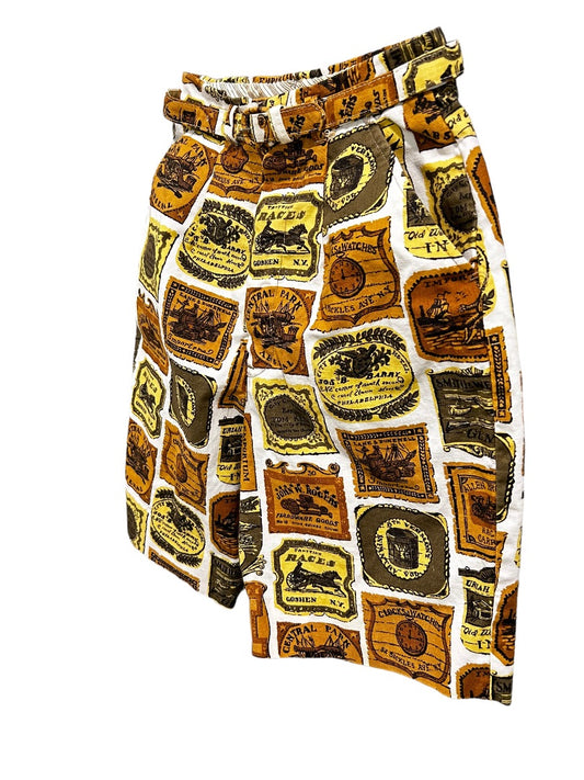 Pantomaker New York Women's Vintage 1960s Historical Print Shorts Belt