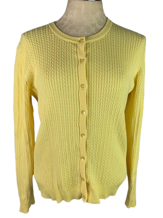 Large David Brooks Yellow Button Down Cardigan Cable Knit Women's