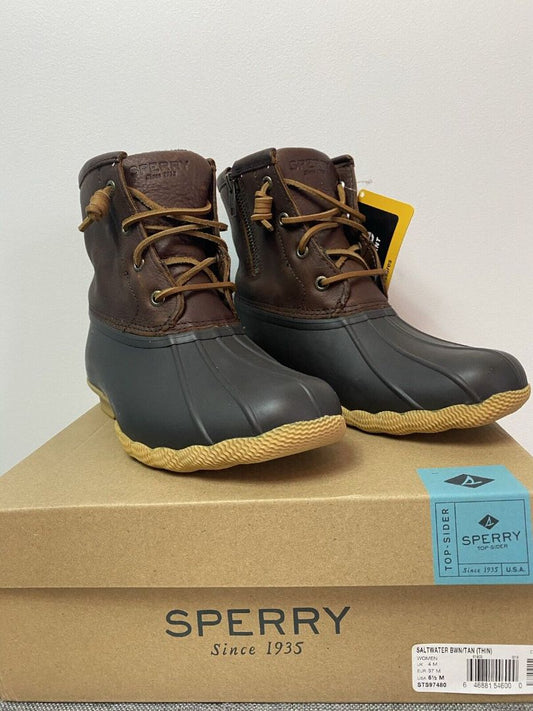 6 .5 Sperry Top-Sider Women's Saltwater Thin Edge Brown Rainboots Duck Boots NIB