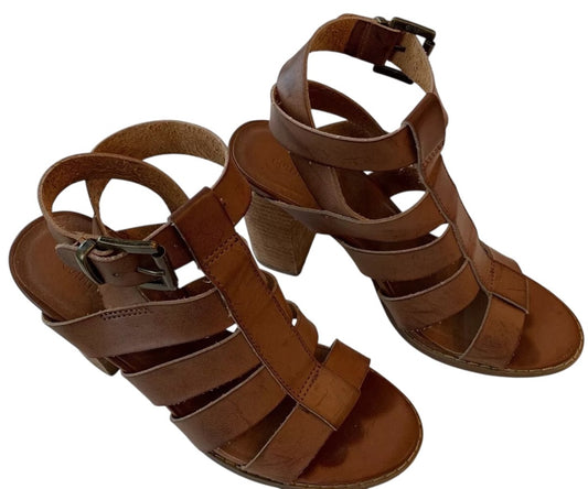 Size 6 Urban Outfiters Womens 4 Inch Block Heel Brown Leather Strappy Sandals