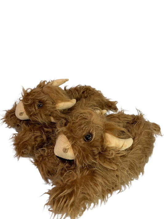 Size 7-9 Womens Adult Highland Cow Plush Slippers Non-Slip