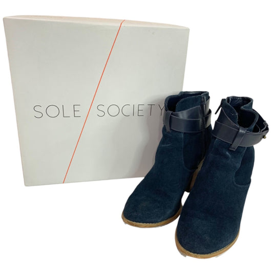 Size 6 Sole Society Womens Suede Booties Ink Blue Kelsita 3" Block Heel