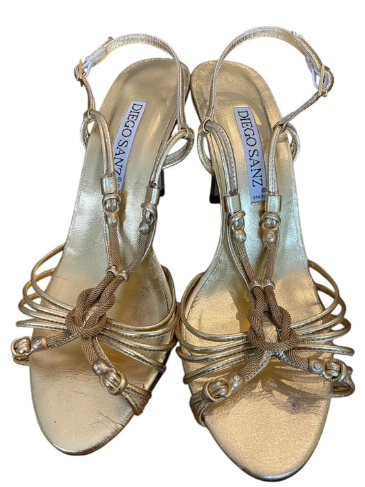 Size 7.5 Diego Sanz Spain Strappy Sandals Gold 3.5 Inch Heel