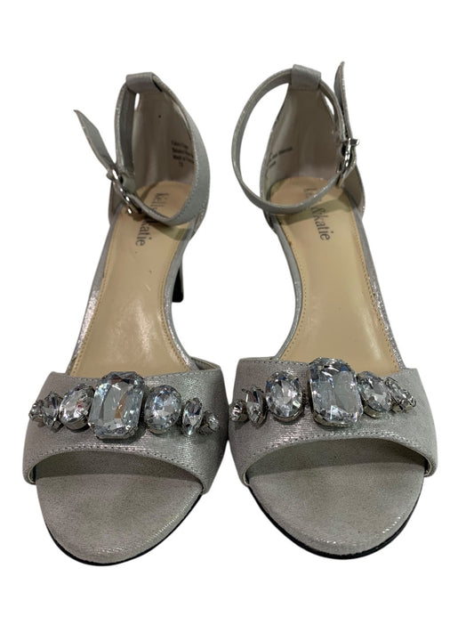 Size 7.5 Kelly & Katie Silver Bejeweled Ankle Strap 3 Inch Heels