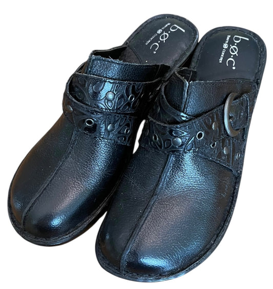 9M BOC Born Concept Women's Leather Block Heel Mules Black C35300 CIG14