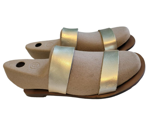 7 J.Crew Women's Gold Leather Metallic Sandals Slip on Two Strap Flat