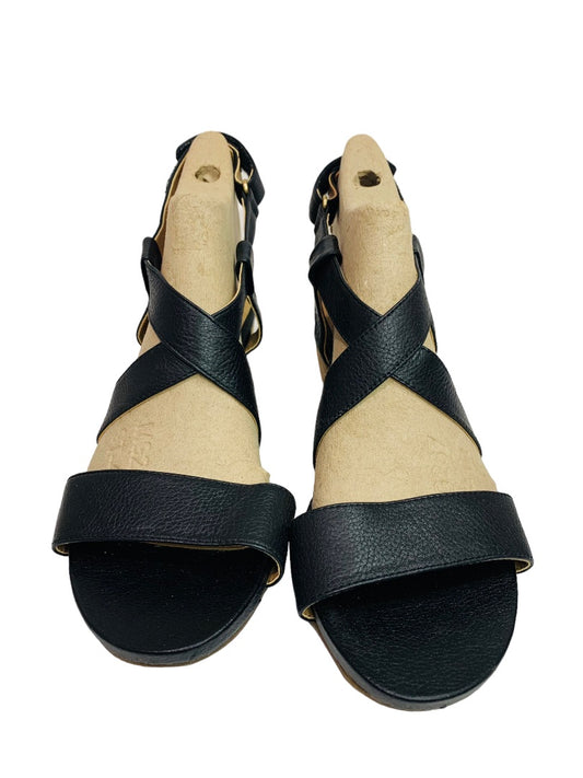 Size 9 Me Too Women's Black Leather Wedge Payton Sandals