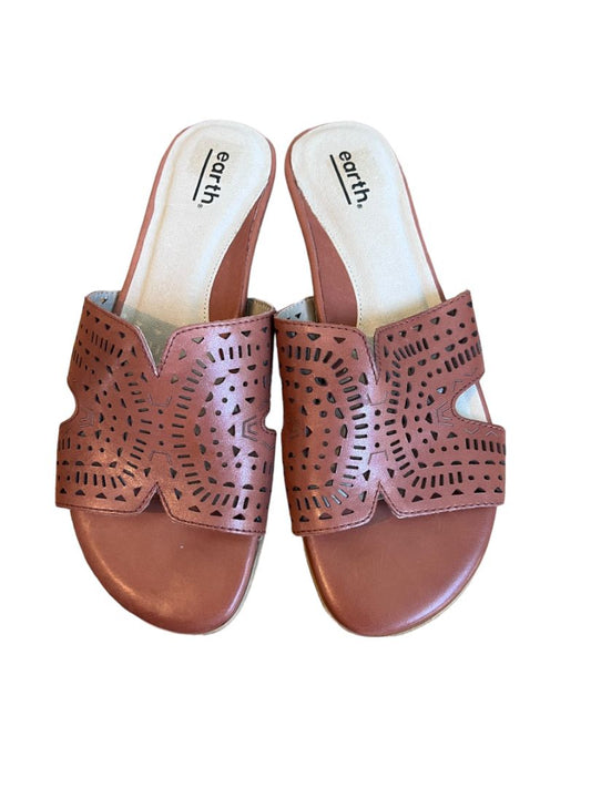 8.5 Earth Mule Slides Perforated Brown Leather Sandals Comfort