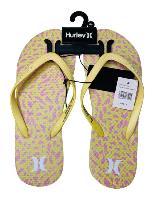 7M Hurley Womens New Animal Flip Flops Yellow Pink Cheetah Sunrise