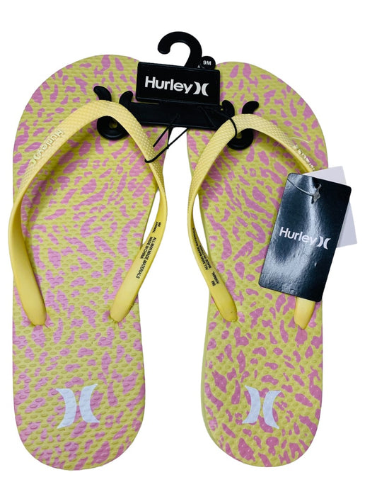9M Hurley Womens New Animal Flip Flops Yellow Pink Cheetah Sunrise