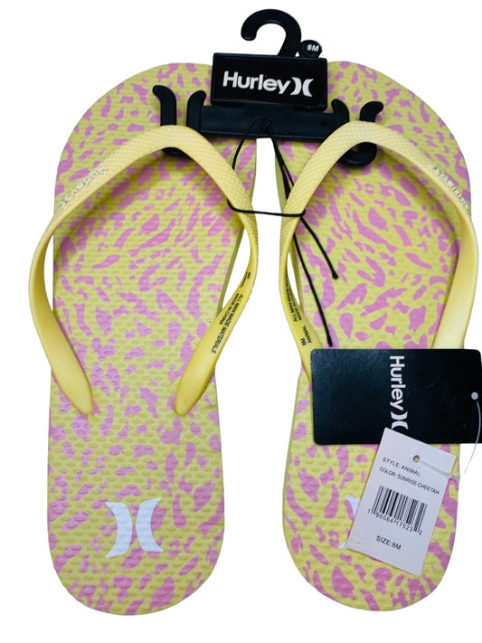 8M Hurley Womens New Animal Flip Flops Yellow Pink Cheetah Sunrise