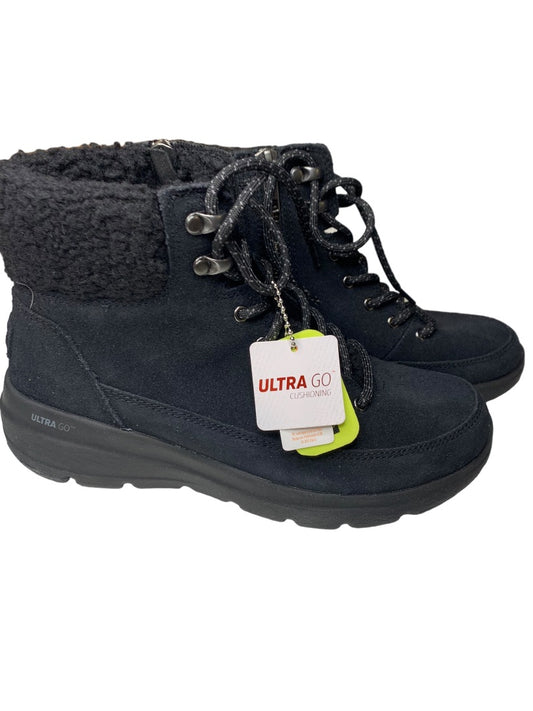 Size 7 Skechers Womens Glacial Ultra-Woodlands Zipper Winter Boots Shoes Black New 16677