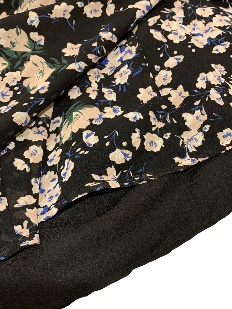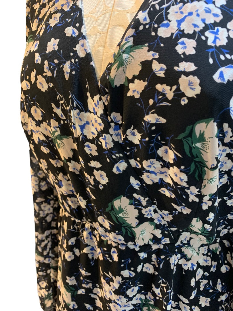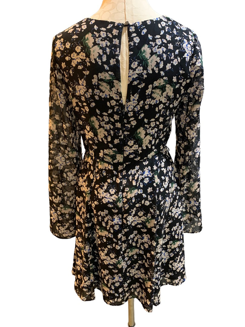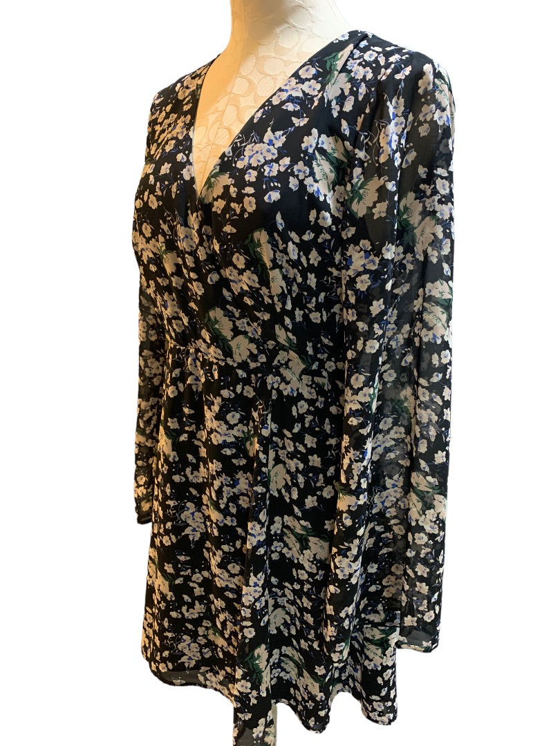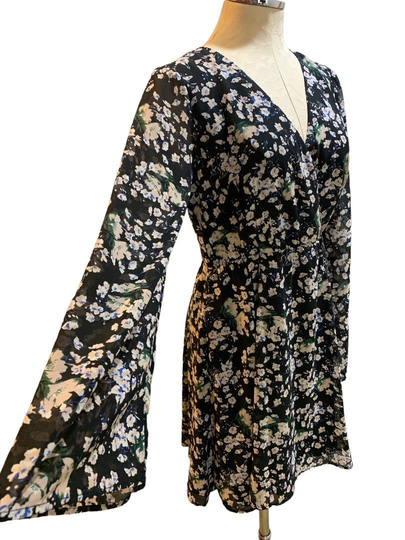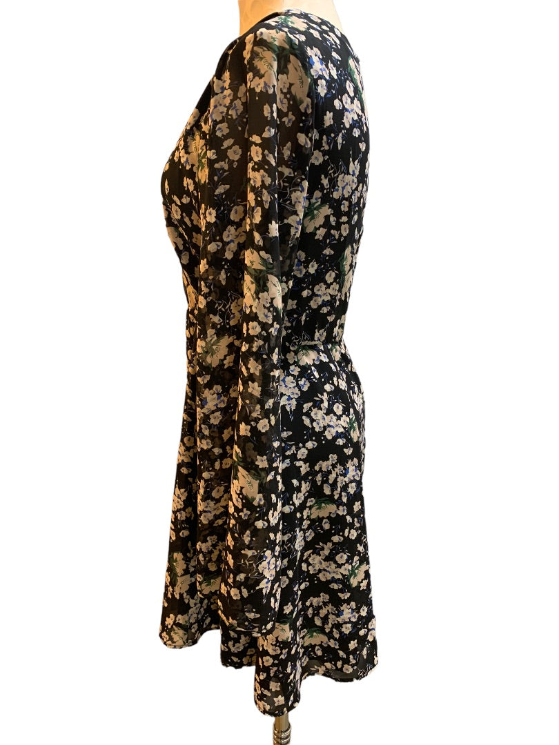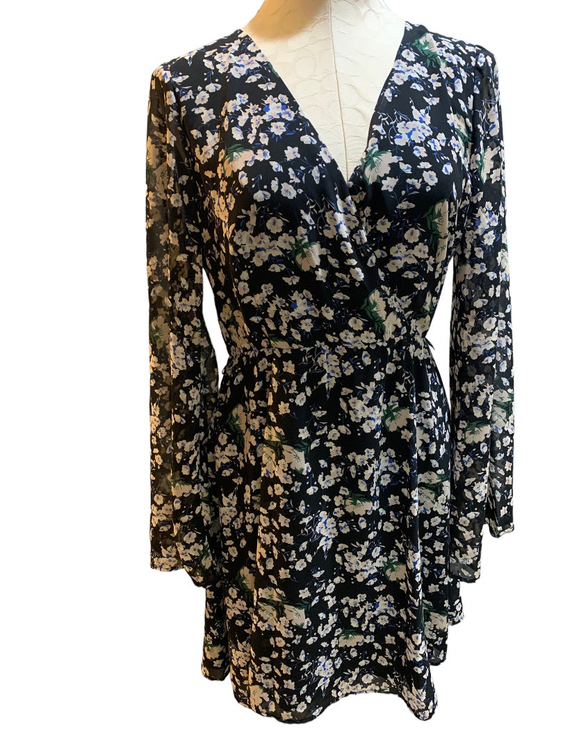 1 June & Hudson Floral Print Faux Wrap Dress Junior Women's Lined Sheer Sleeve