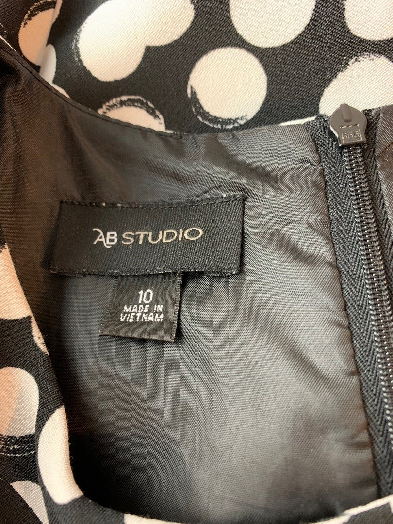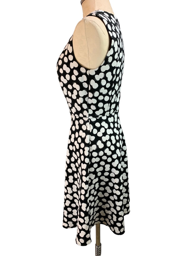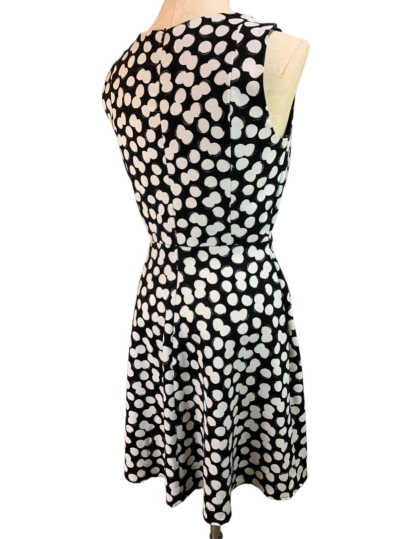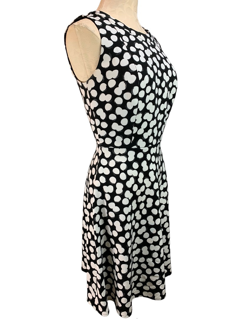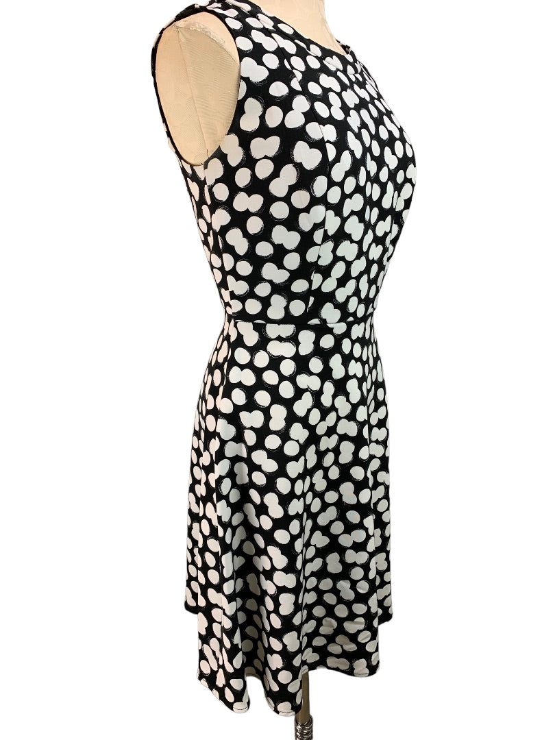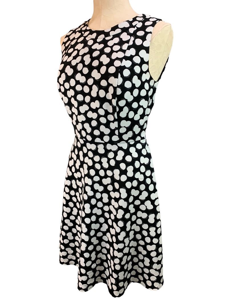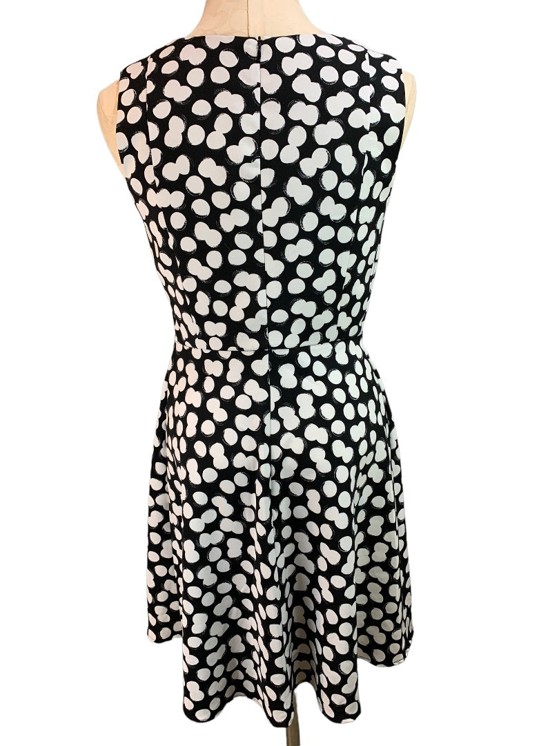 10 AB Studio Black White Dot Sleeveless A-Line Dress Lined Bodice