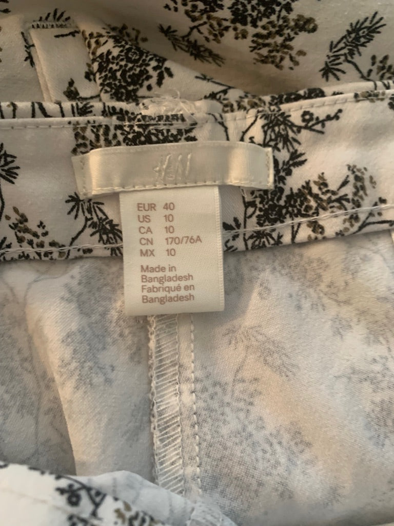 10 H&M Women's Black White Ankle Side Zip Pants Slim Leg Stretch 27" Inseam