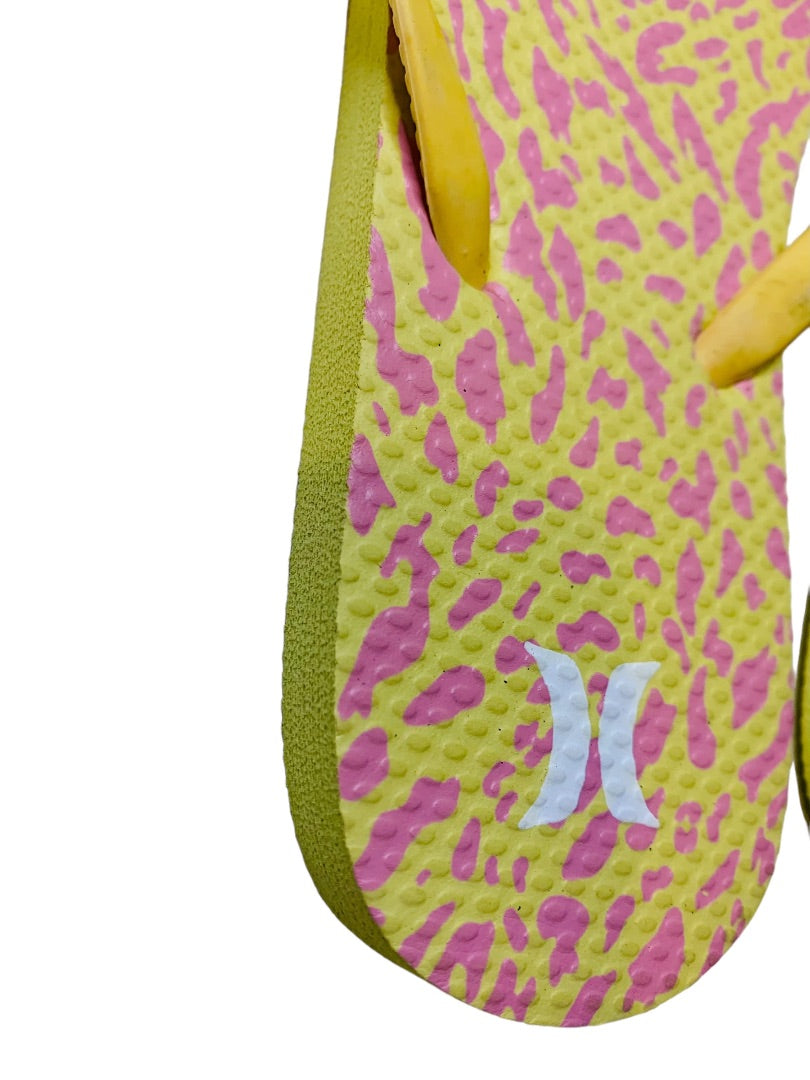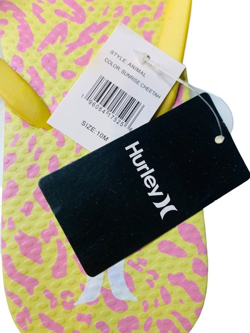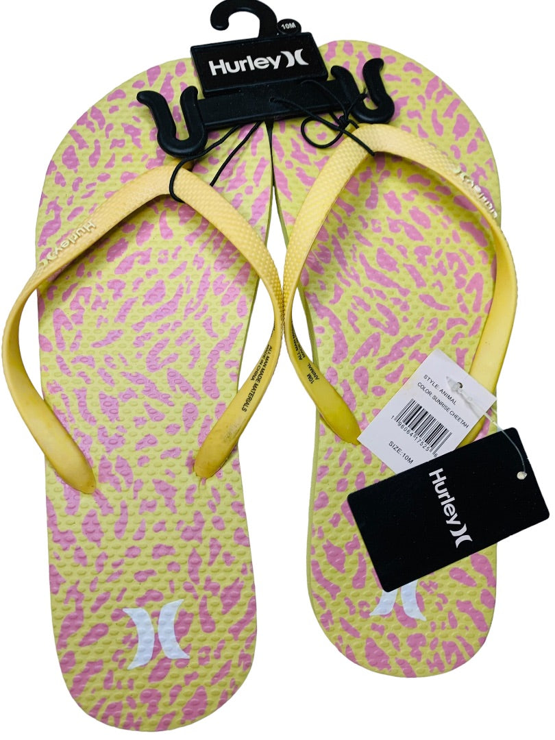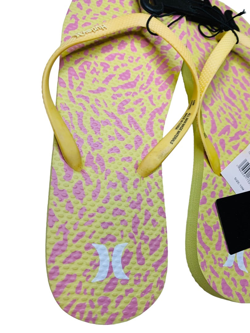 10M Hurley Womens New Animal Flip Flops Yellow Pink Cheetah Sunrise