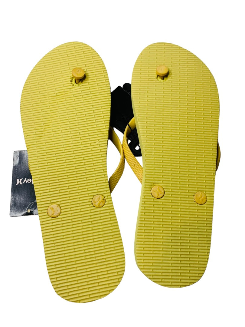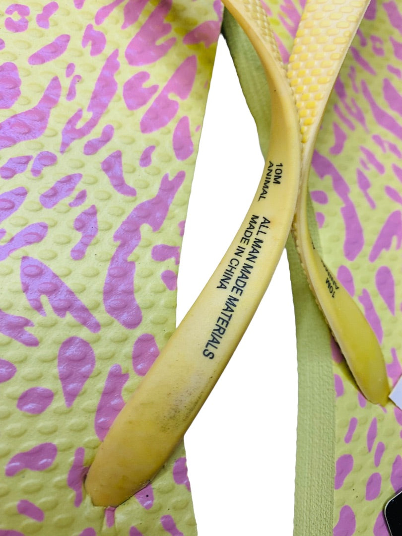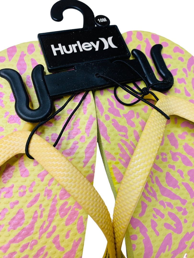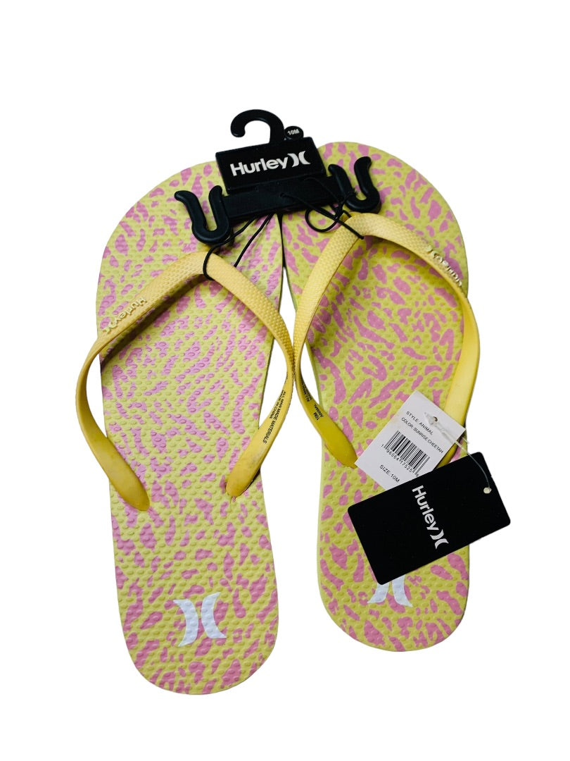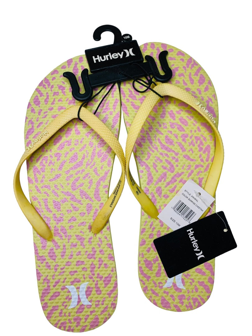10M Hurley Womens New Animal Flip Flops Yellow Pink Cheetah Sunrise