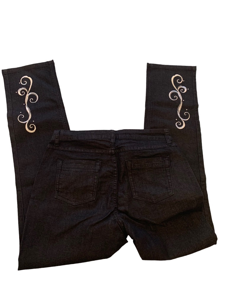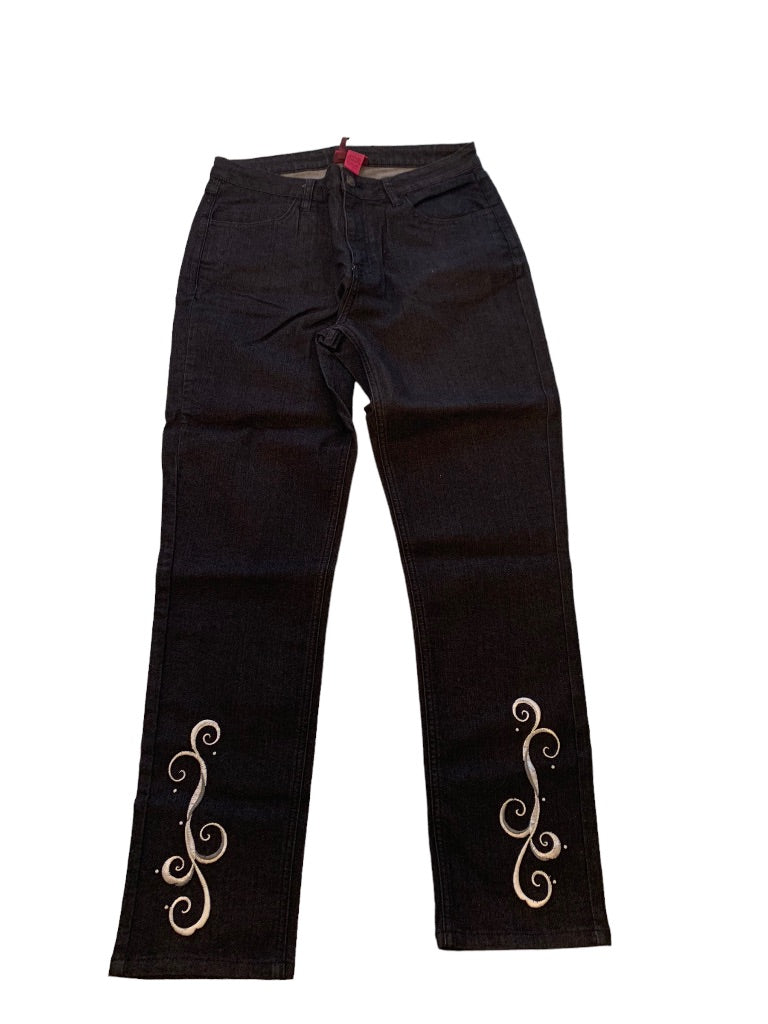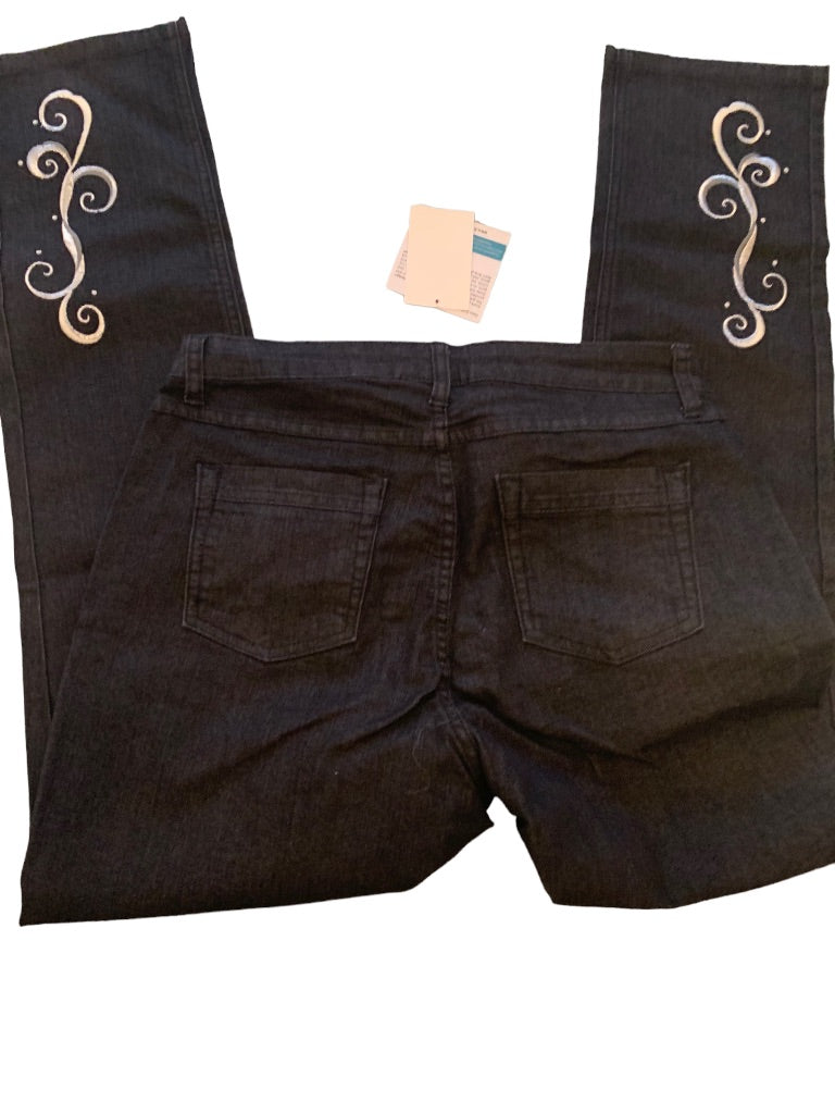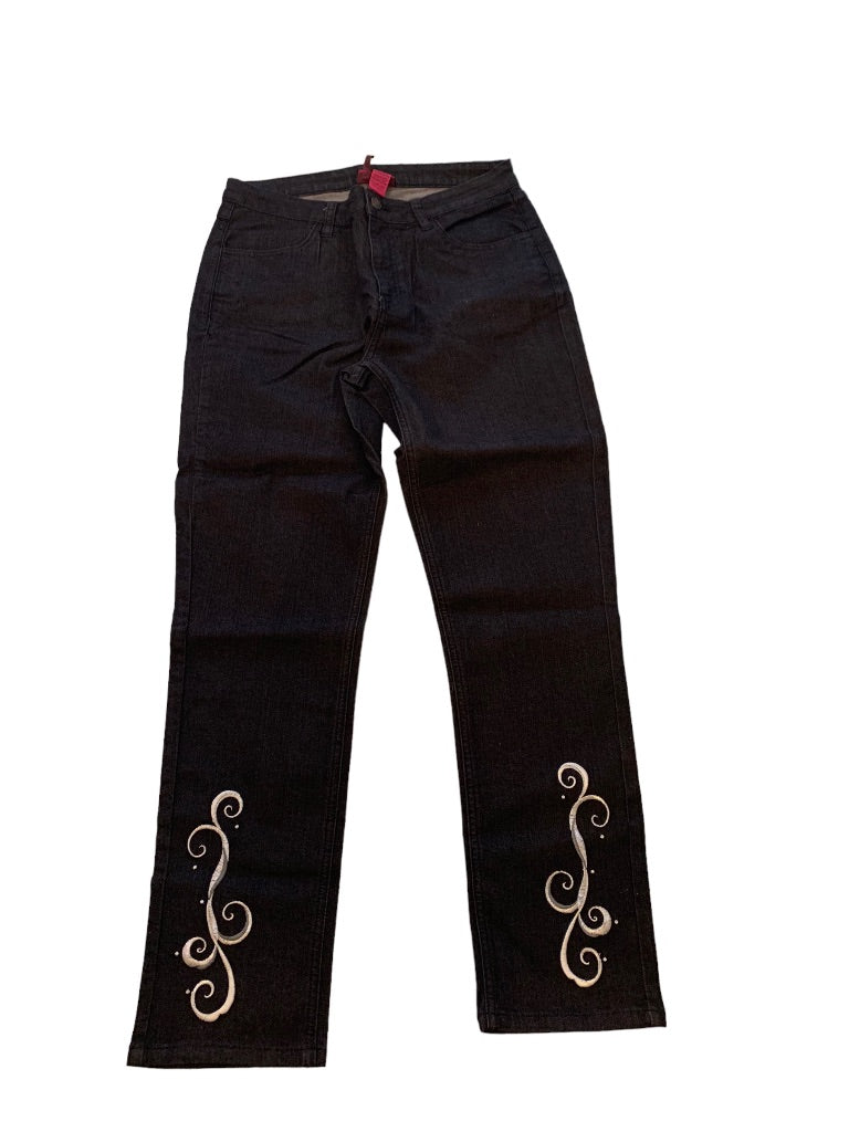12 Antthony Original New Black Stretch Denim Jeans Embroidered Details