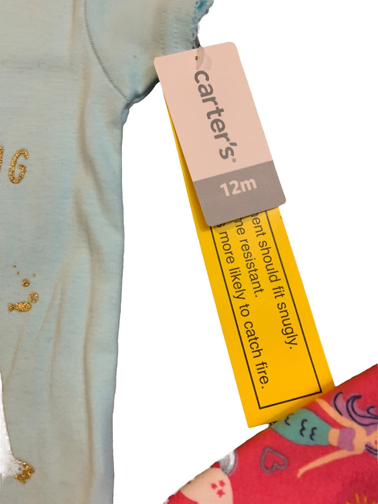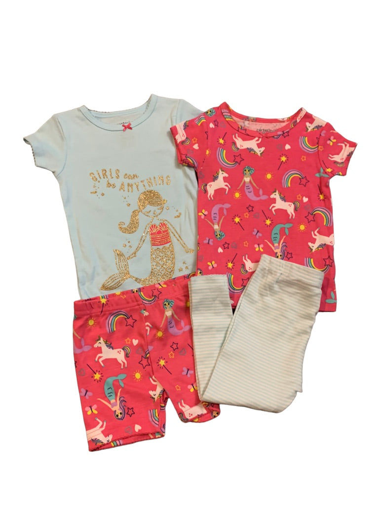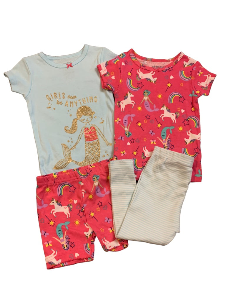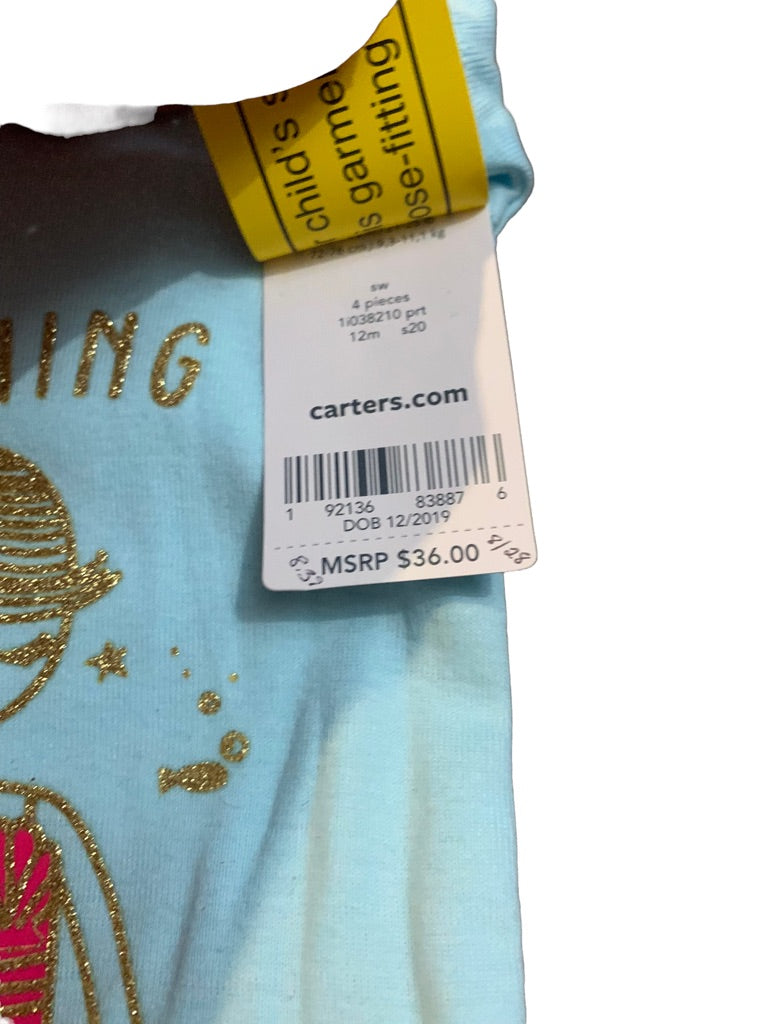12 Months Carter's 4 Piece Pajama PJ Set Mermaid Unicorn "Girls Can be Anything"