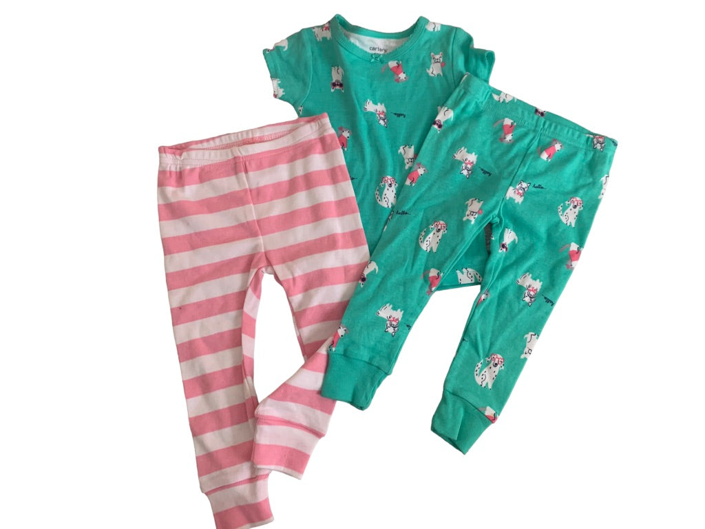 12 Months Carter's New Girls 3 piece Pajama PJ Set Green Pink Stripe Dog Print Short Sleeve Pants