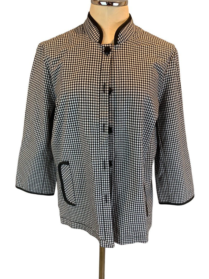 14 RQT Women's Black White Gingham Lightweight Jacket Button Up