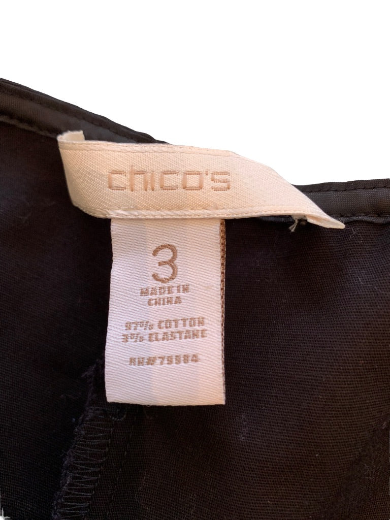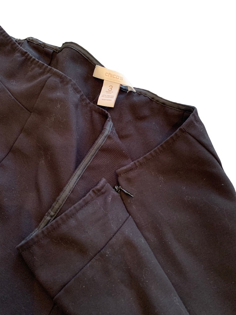 14/16 Chico's Black Side Zip Dress Pants Crop Flat Front Stretch Cotton 27" Inseam