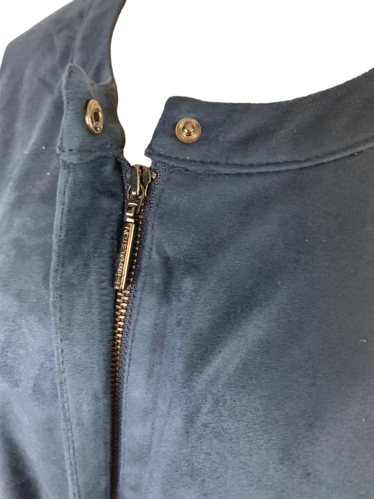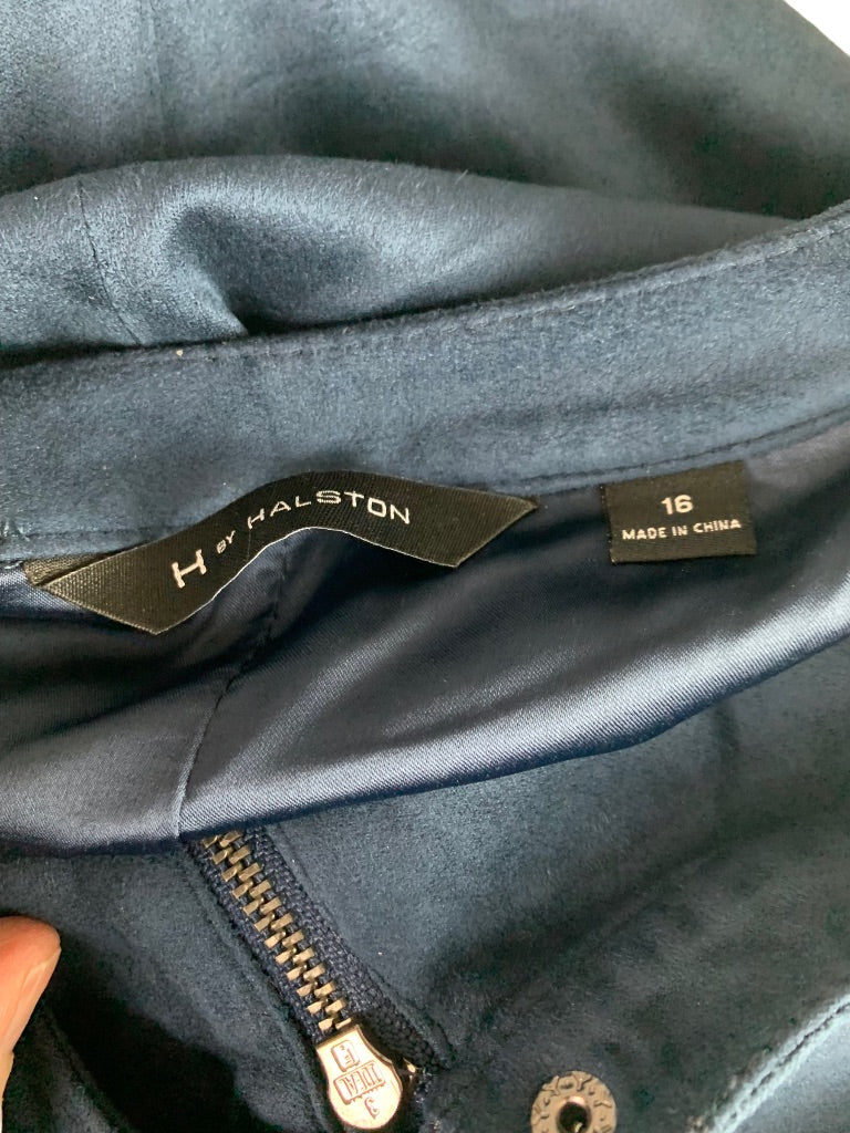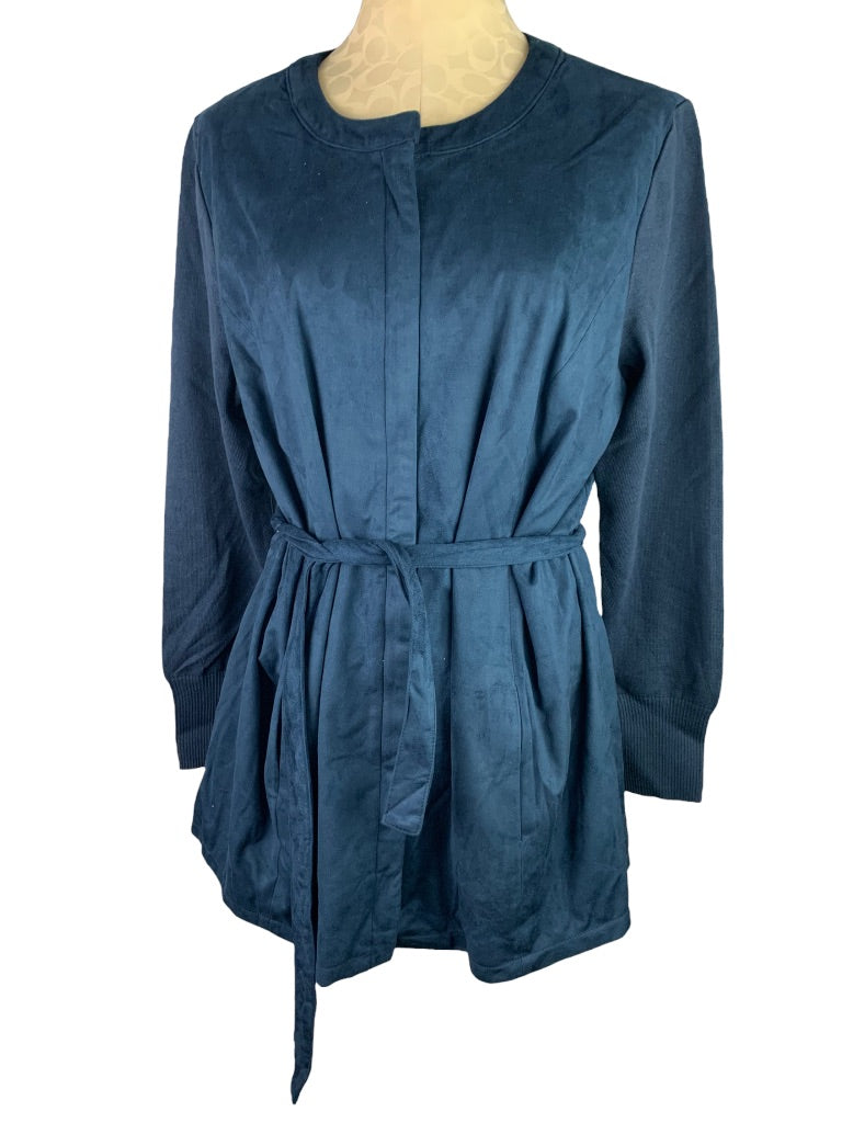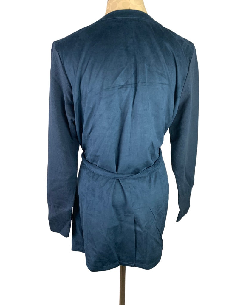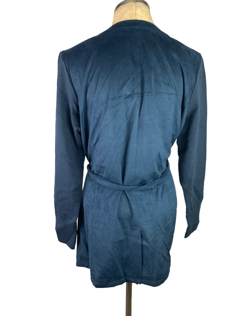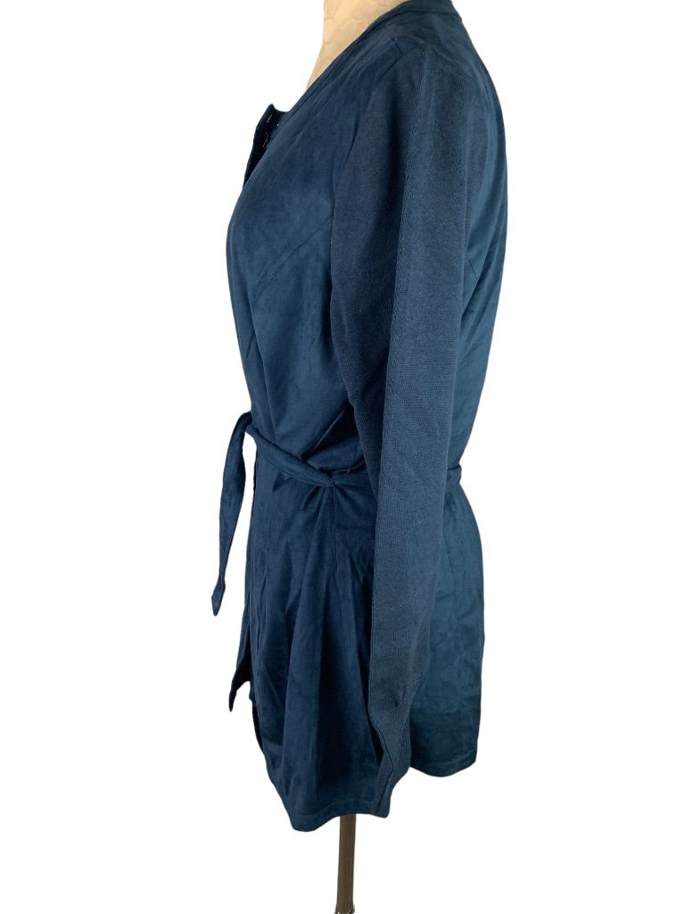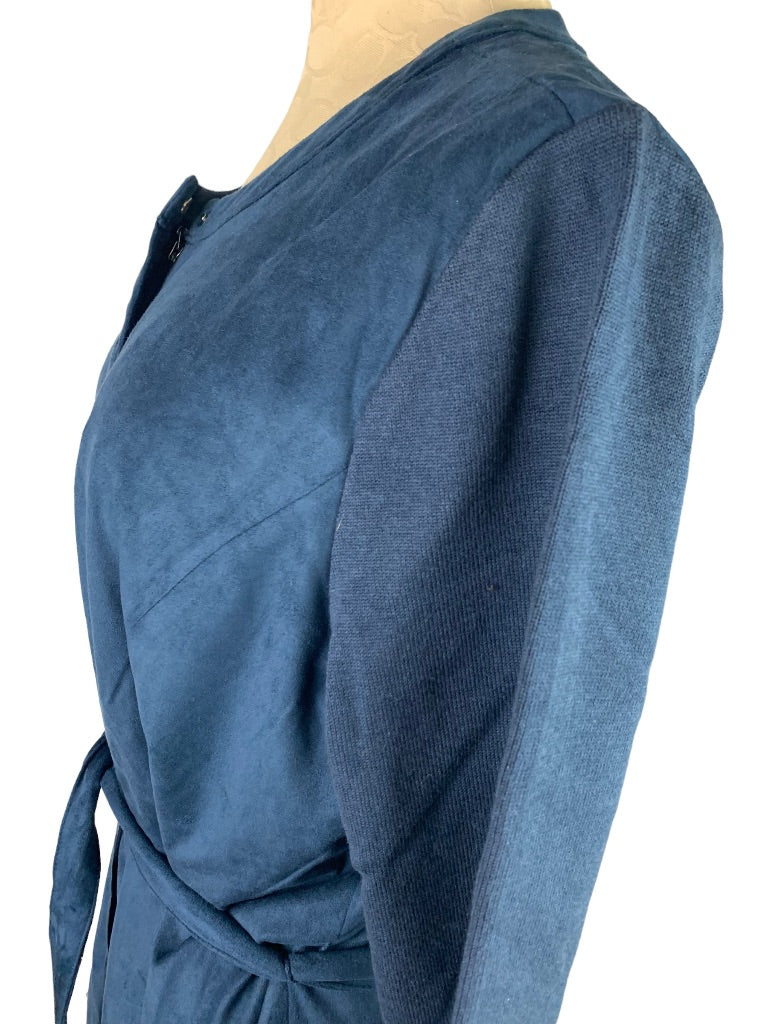 16 H by Halston Women's Navy Blue Faux Suede Belted Dress Knit Sleeves Lined