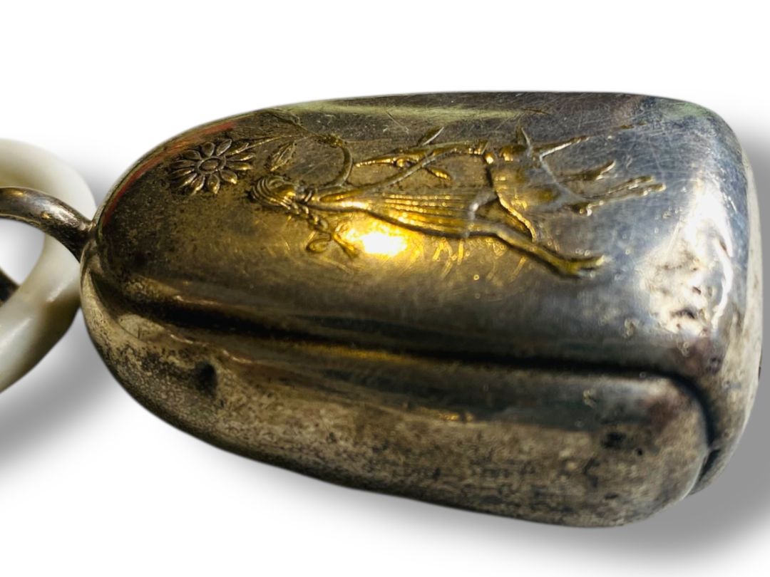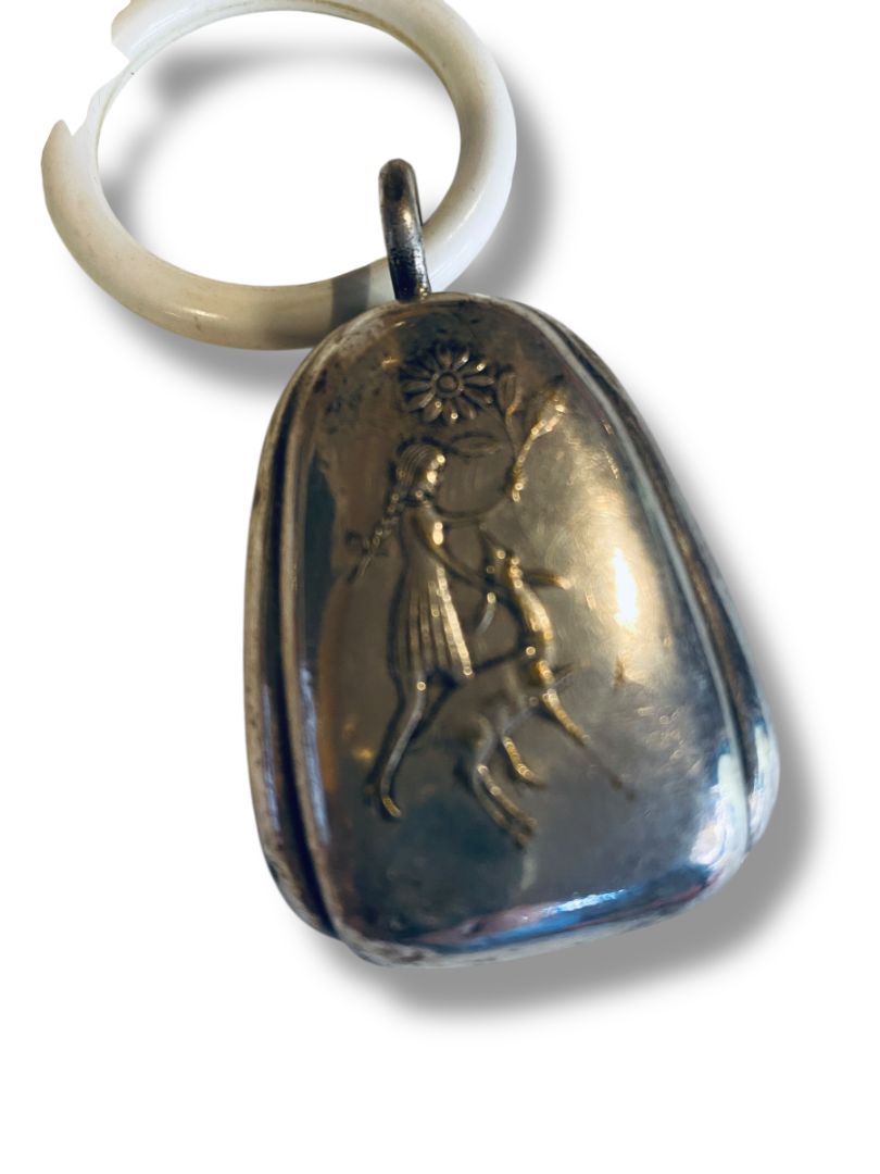1930s WMF Silverplate Decorative Bell Rattle 2.5" Girl Greyhound Double Sided