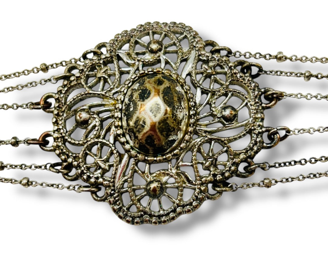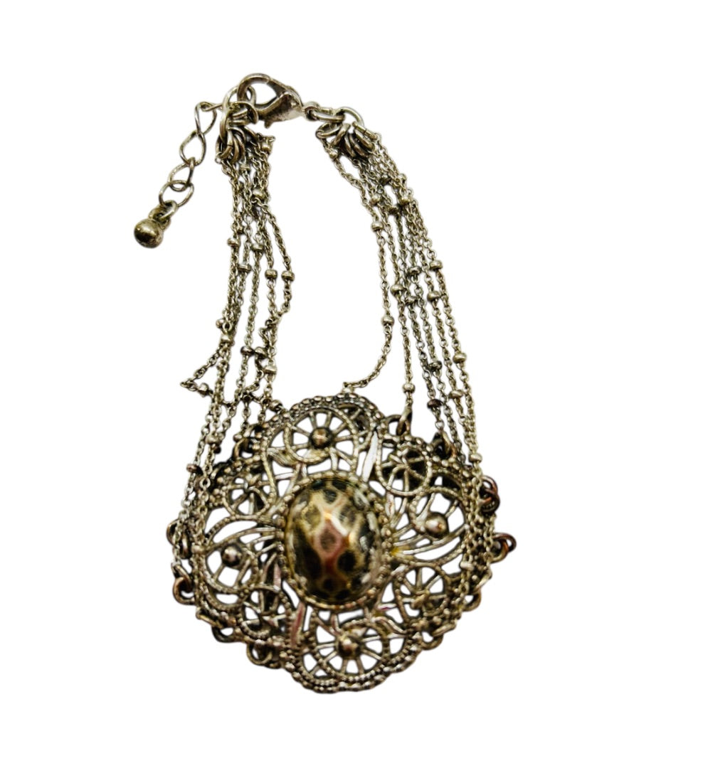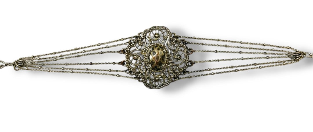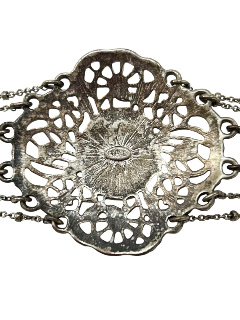 1960s Signed NRI Silvertone Bracelet Art Deco Inspired 7.25-8.5"