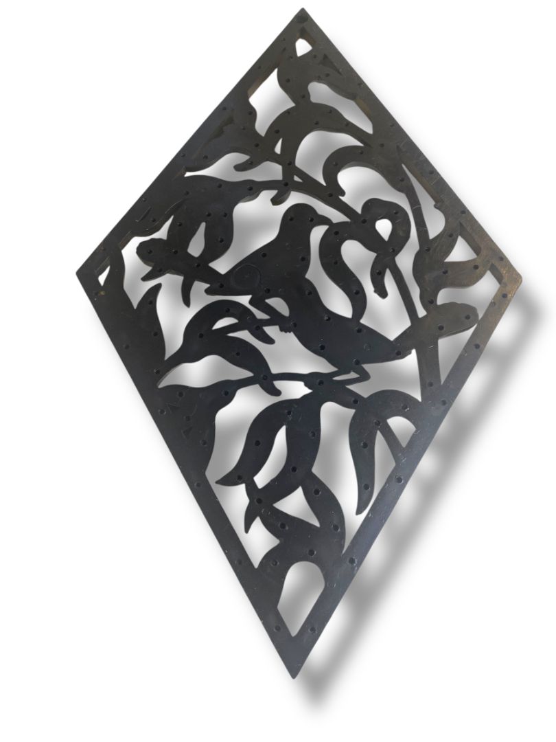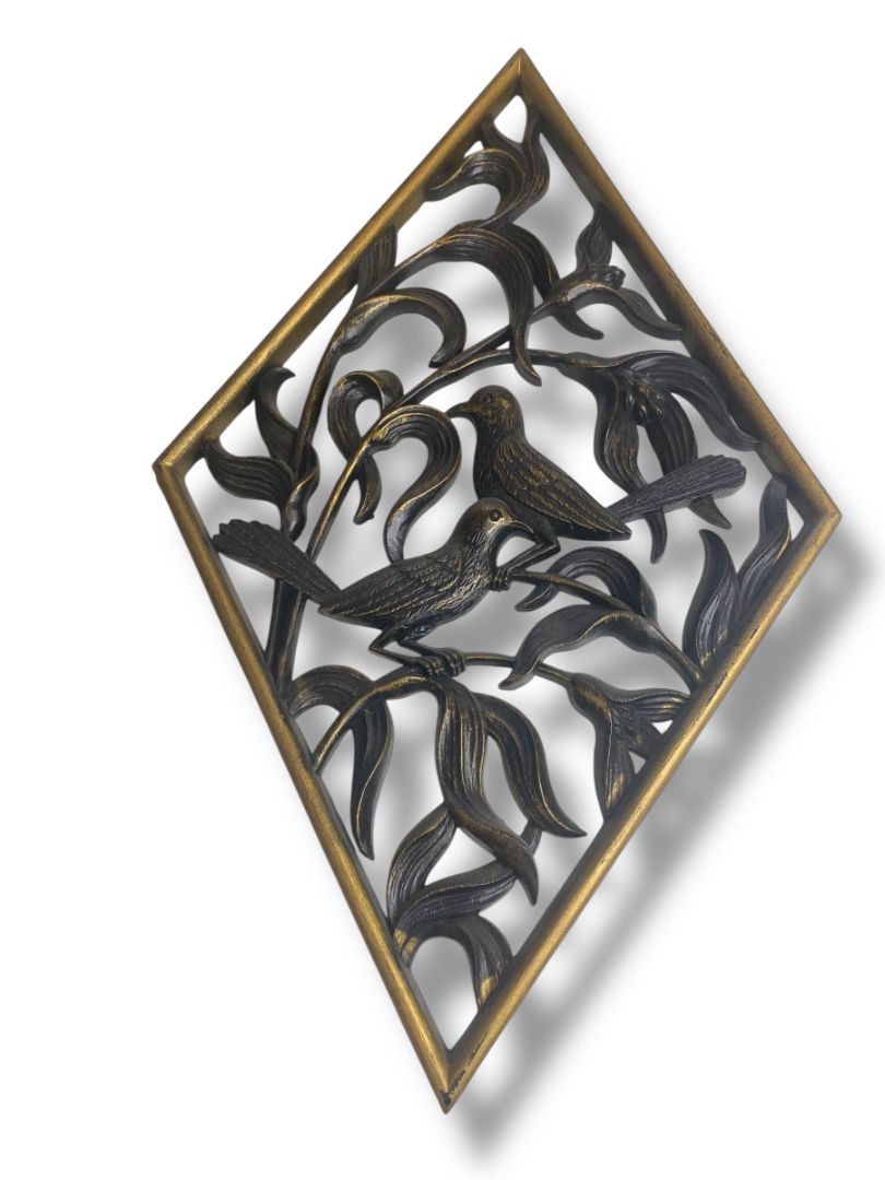 1970s Burwood Homco Wall Plaque Birds Flower Diamond 16.75"h x 10.25"