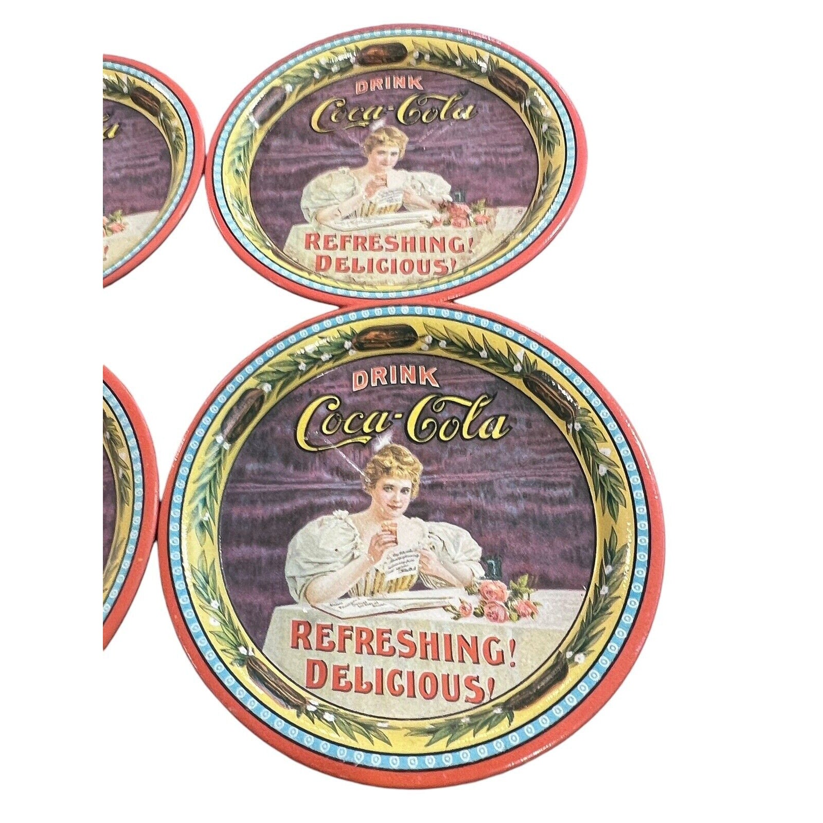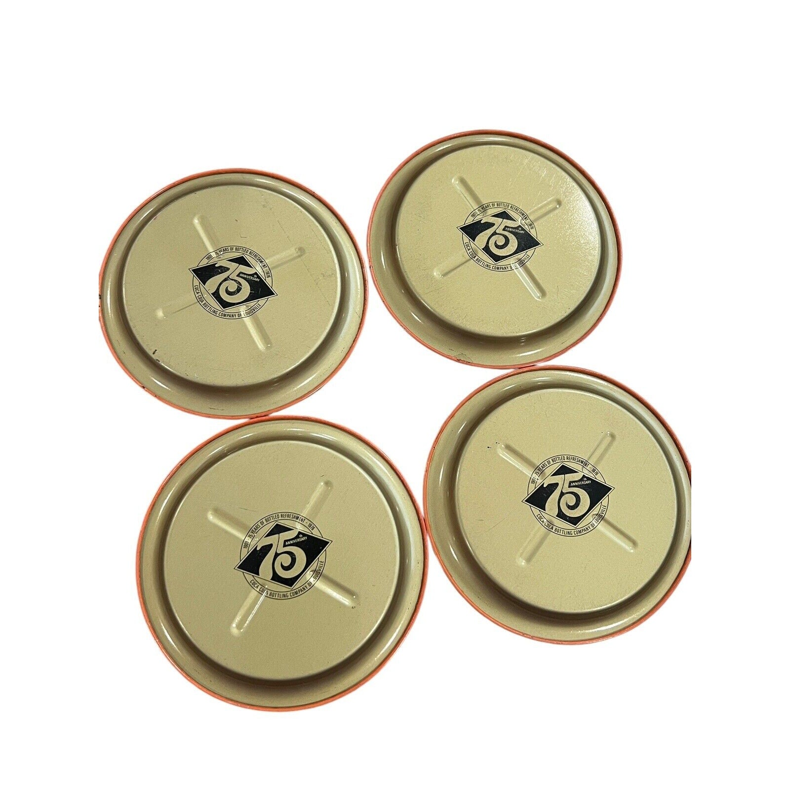 1976 Coca-Cola 75th Anniversary Metal Commemorative Coaster Set Of 4