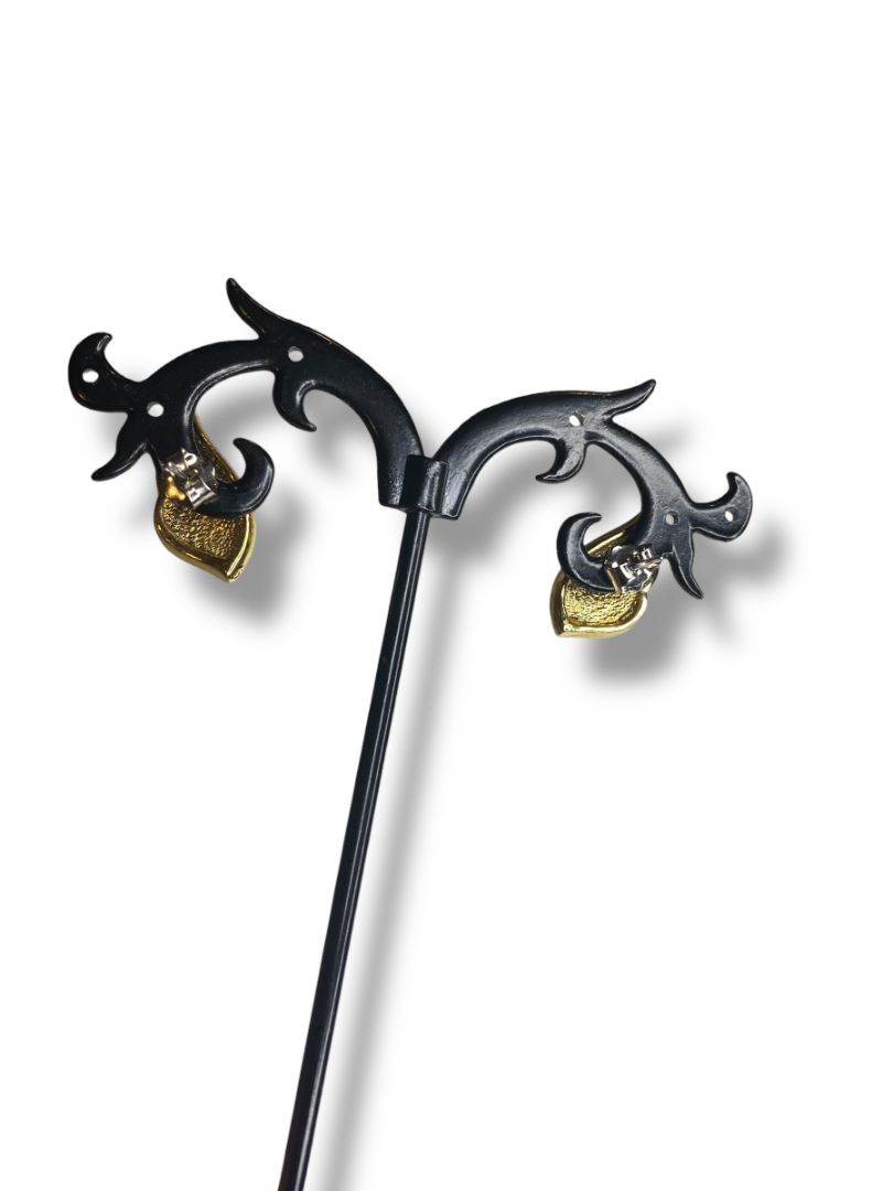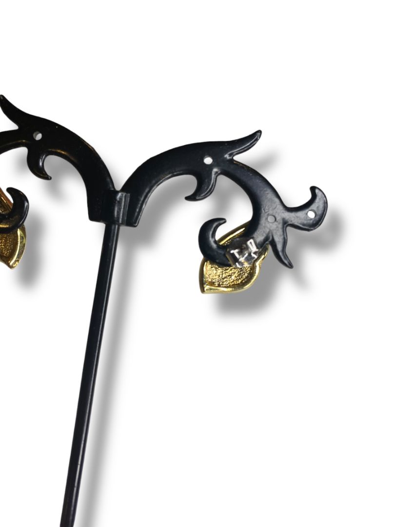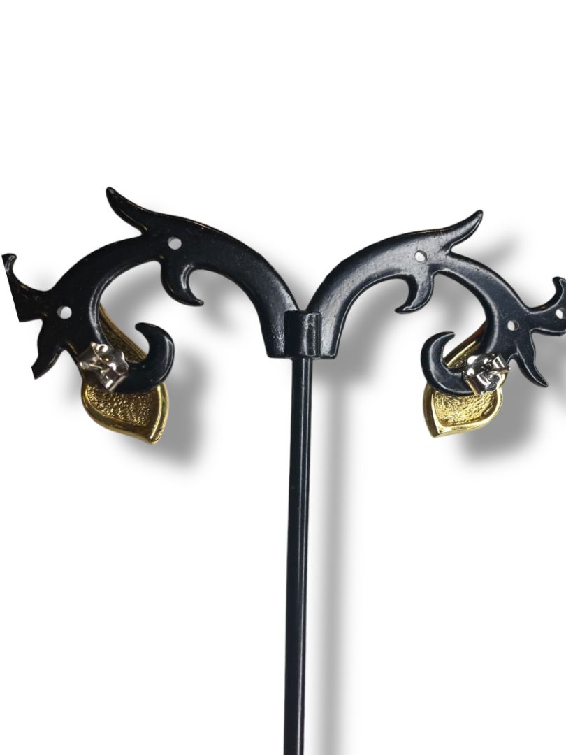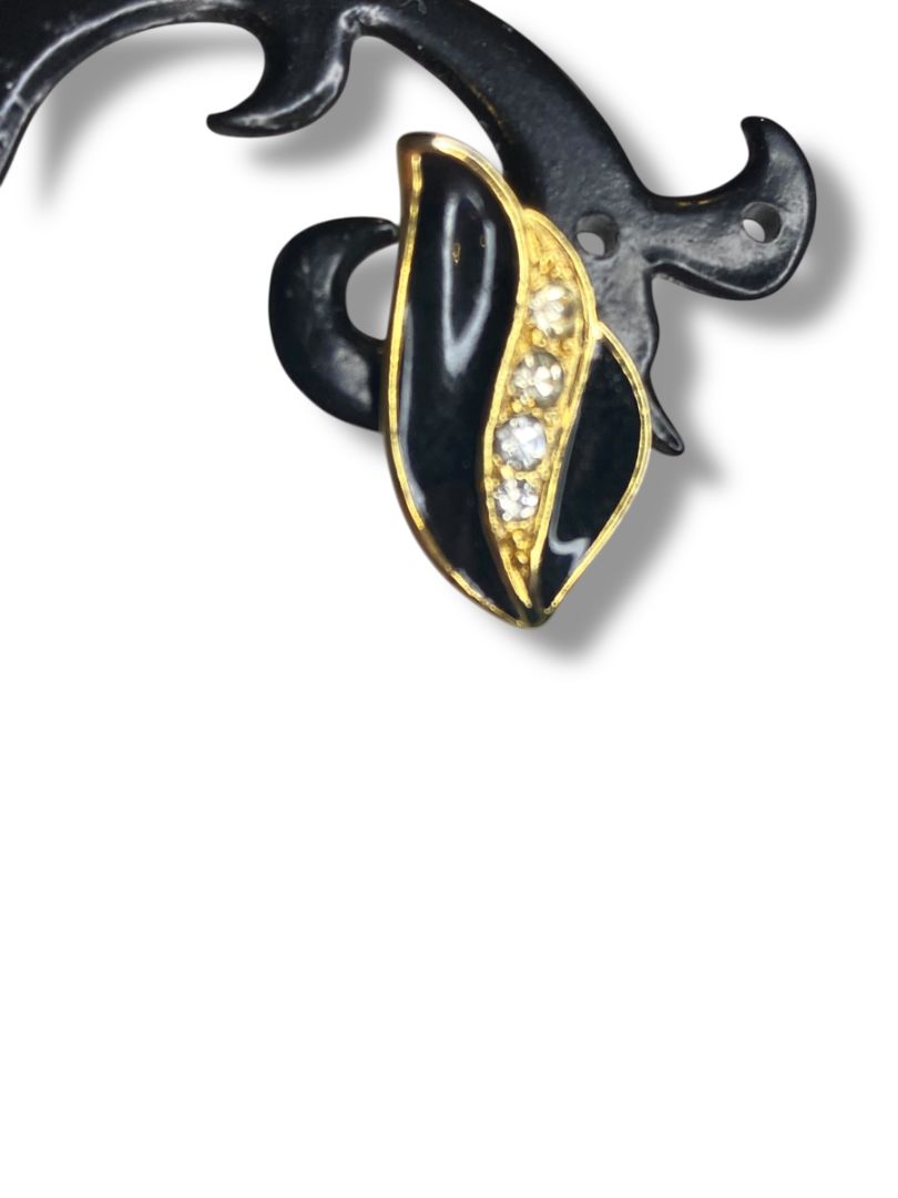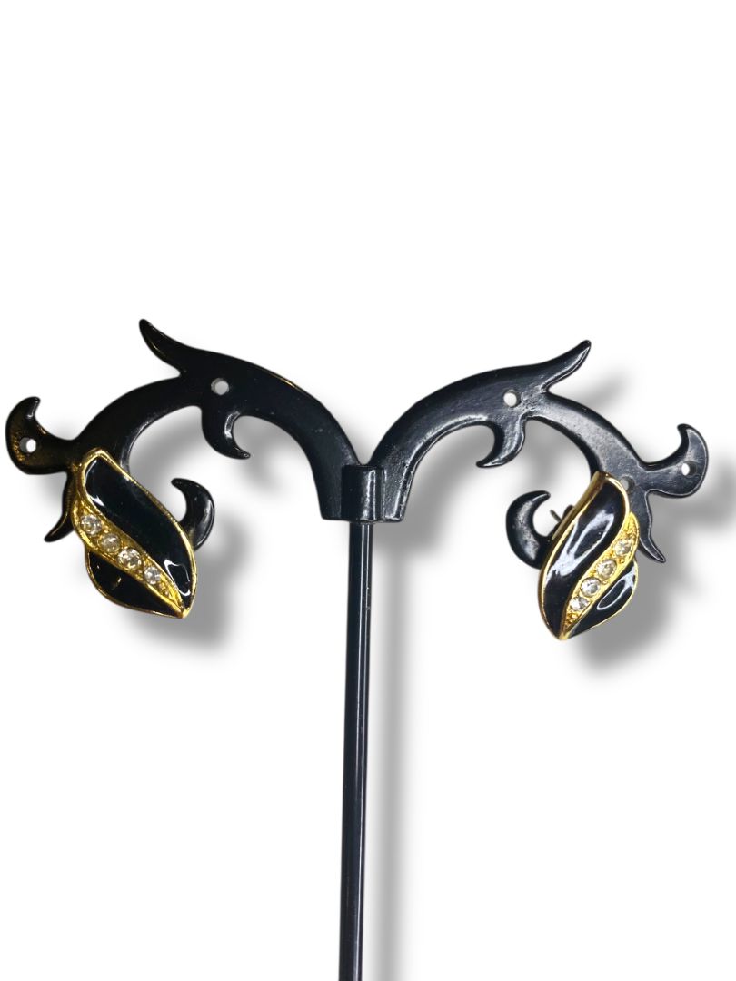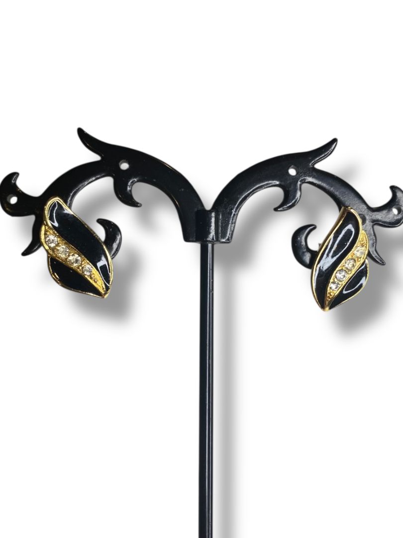 1980s 17mm Goldtone Black Post Pierced Earrings Rhinestone