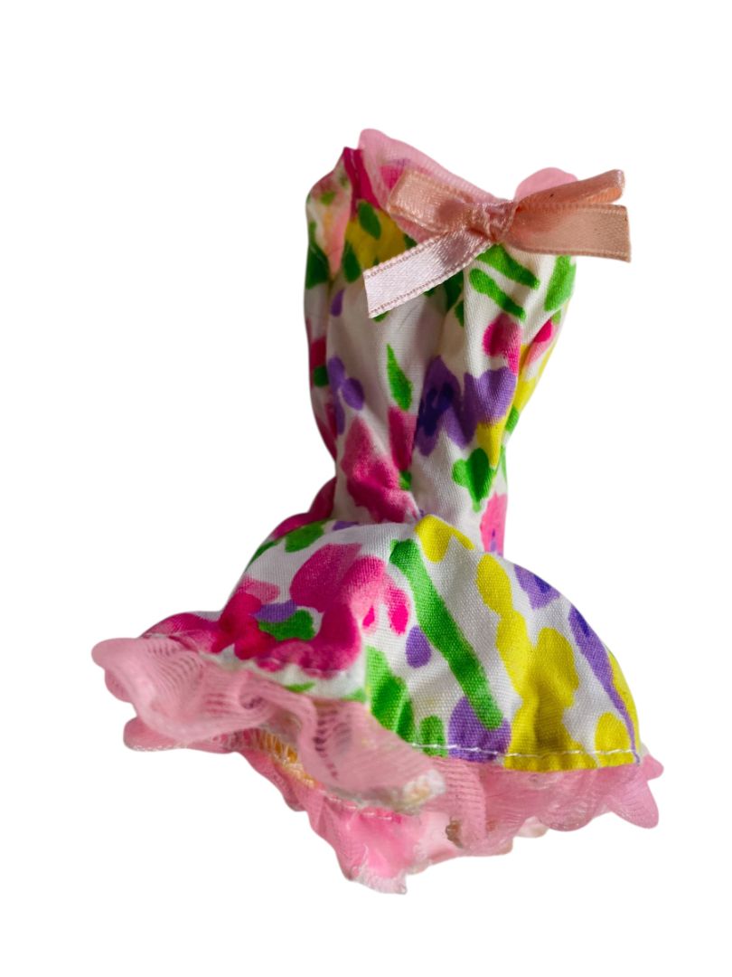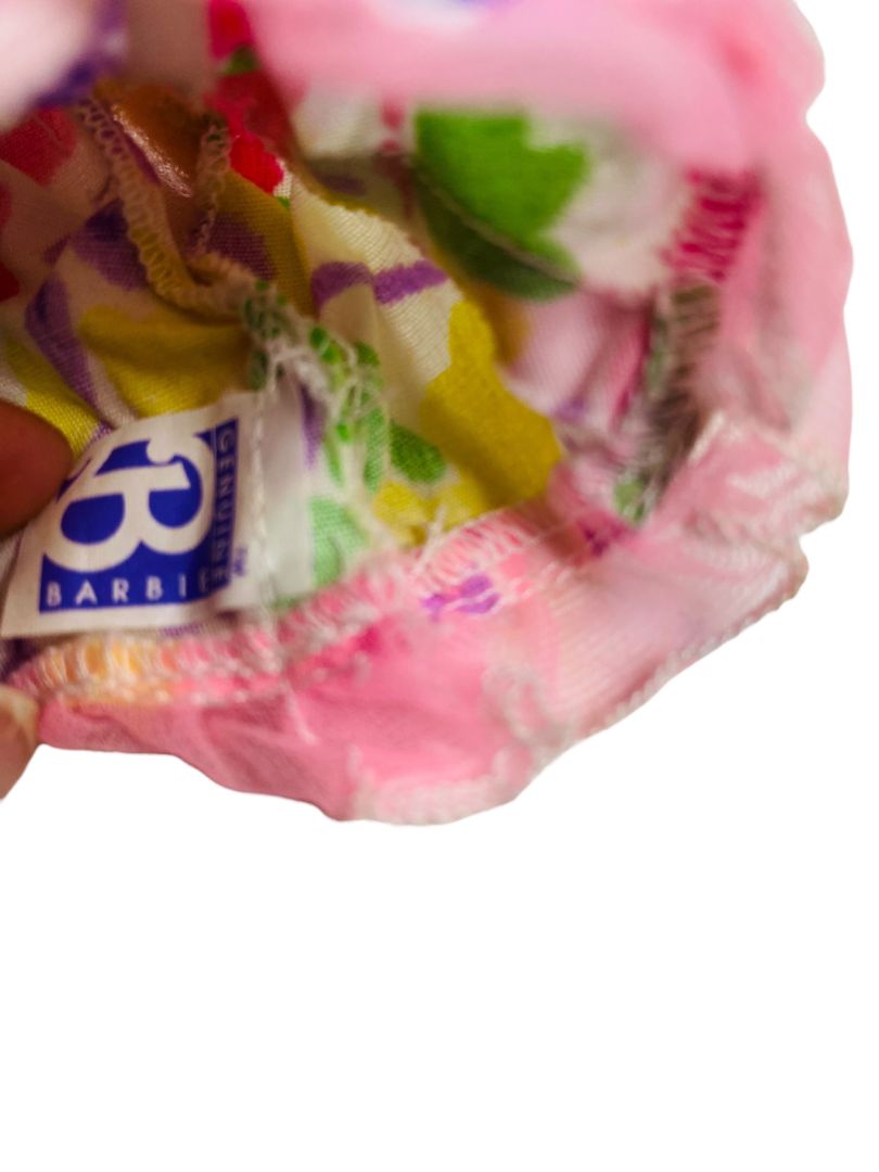 1980s Barbie Floral Mini Dress Pink Trim Sleeveless Flare