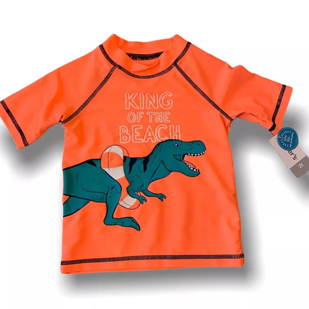 2T Carter's Boys Rashgaurd Swim Shirt Neon Orange Dinosaur UPF 50+ Sun Protection
