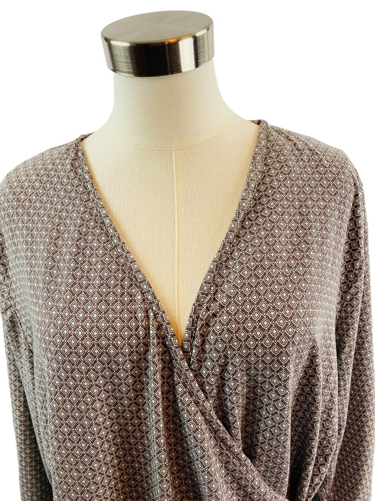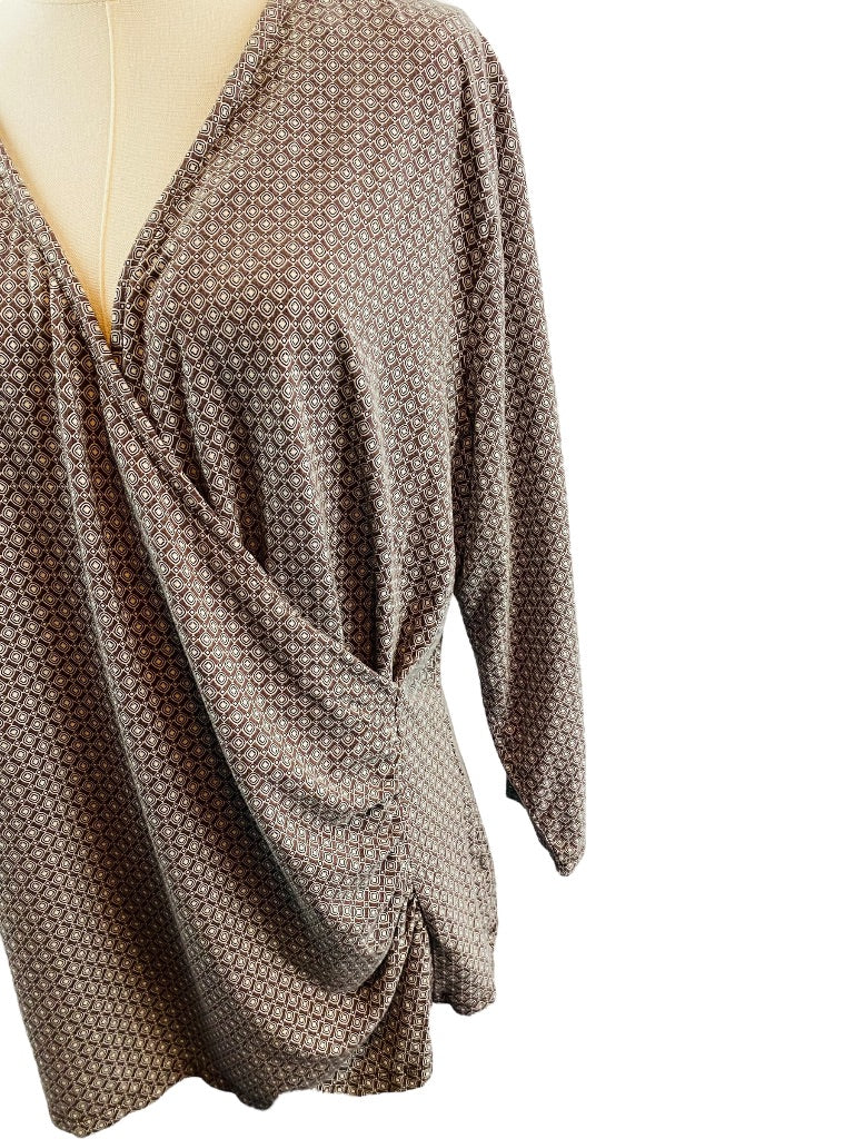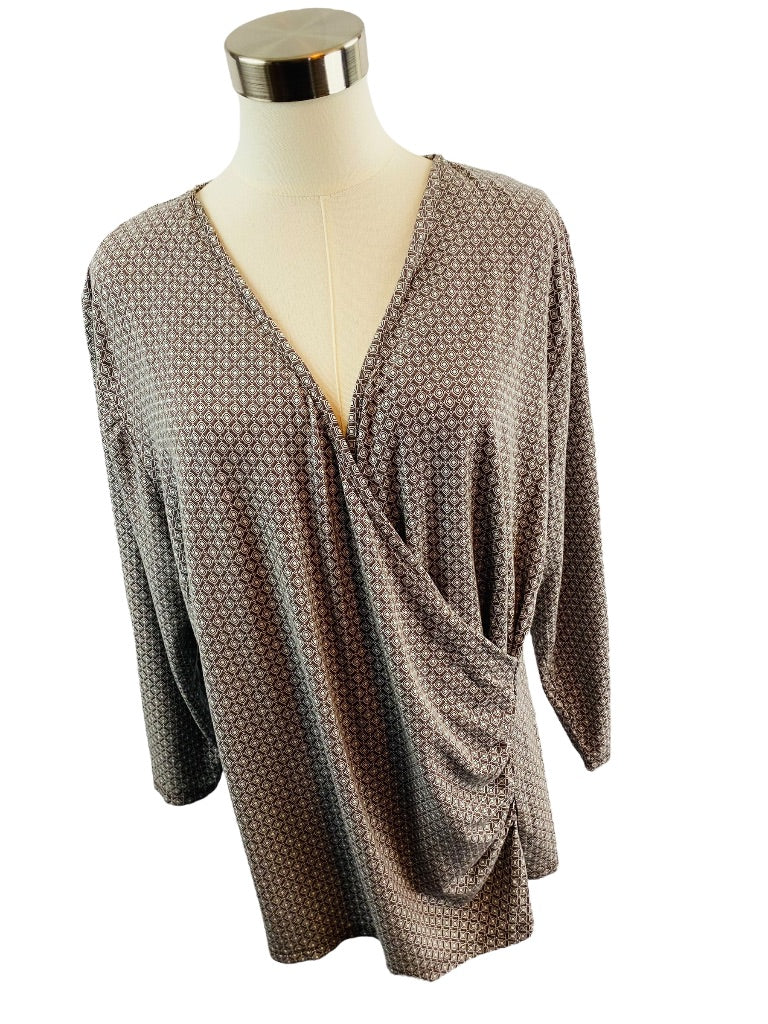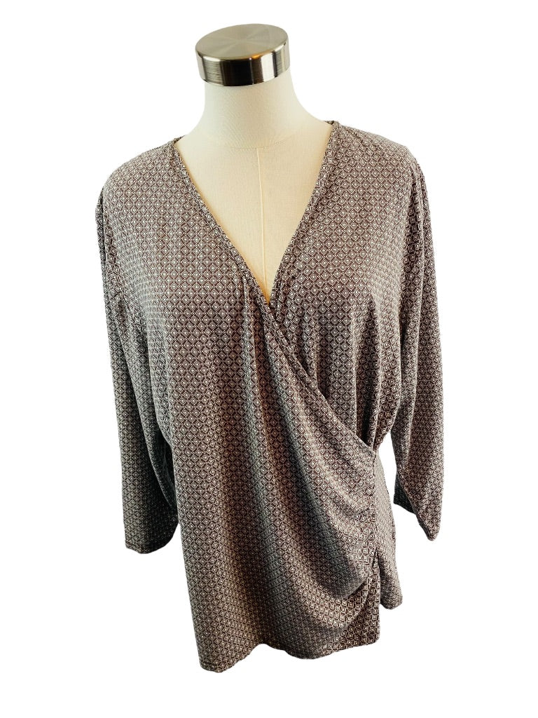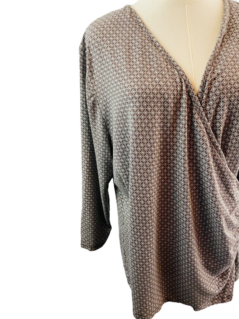 2X Talbots Faux Wrap Print Top Shirt Pullover Soft Knit