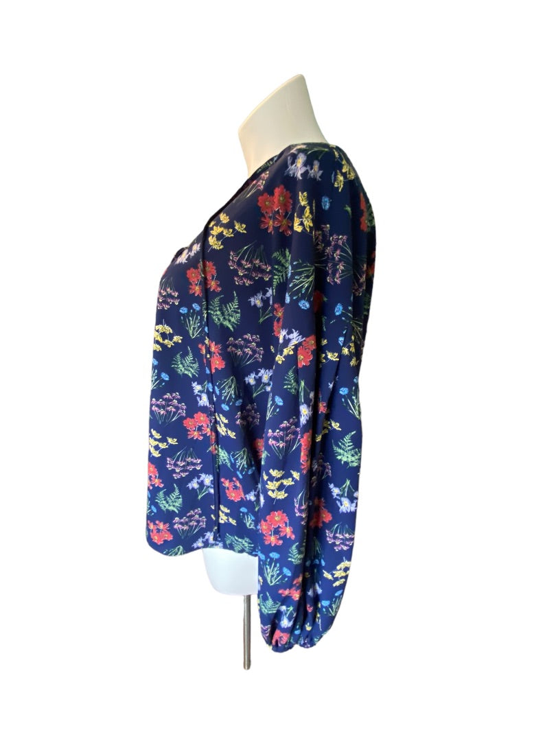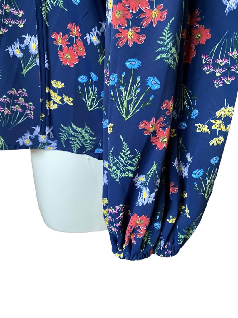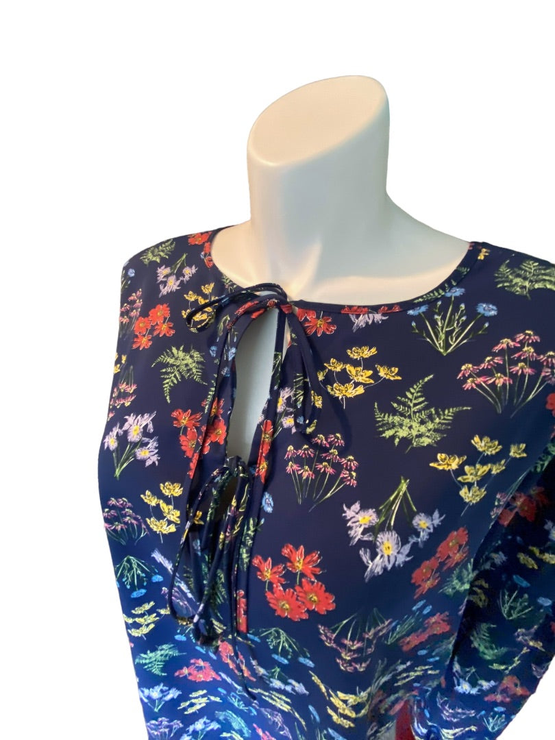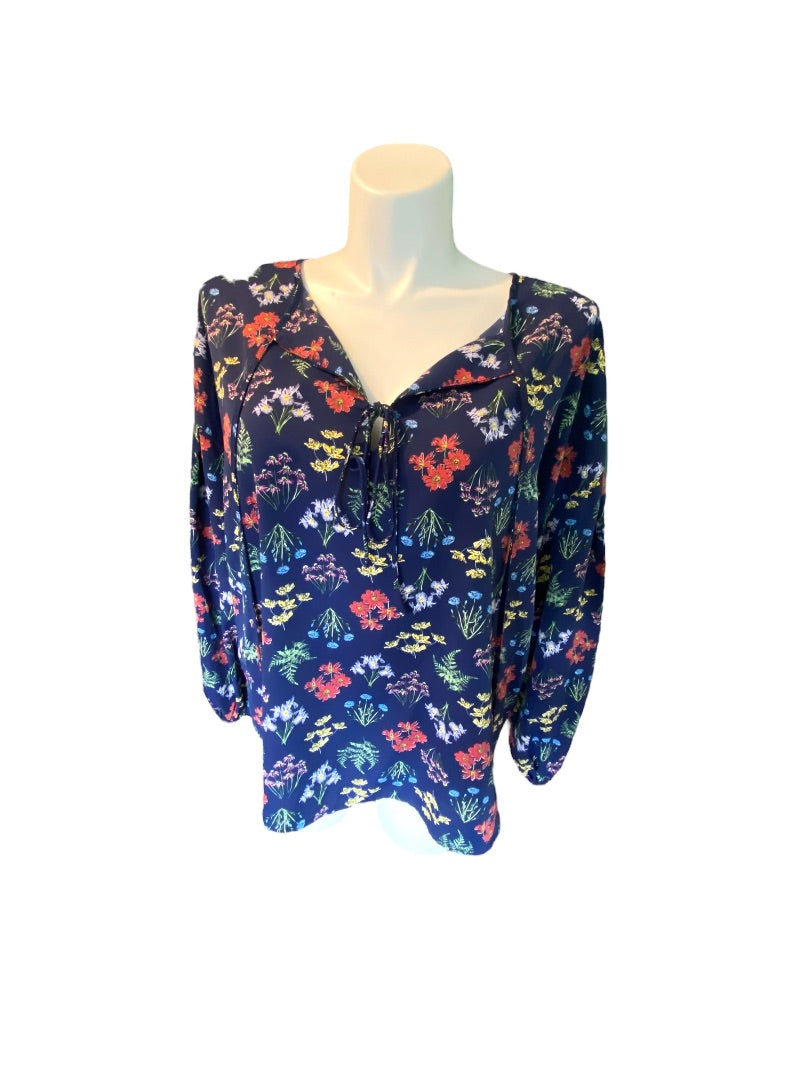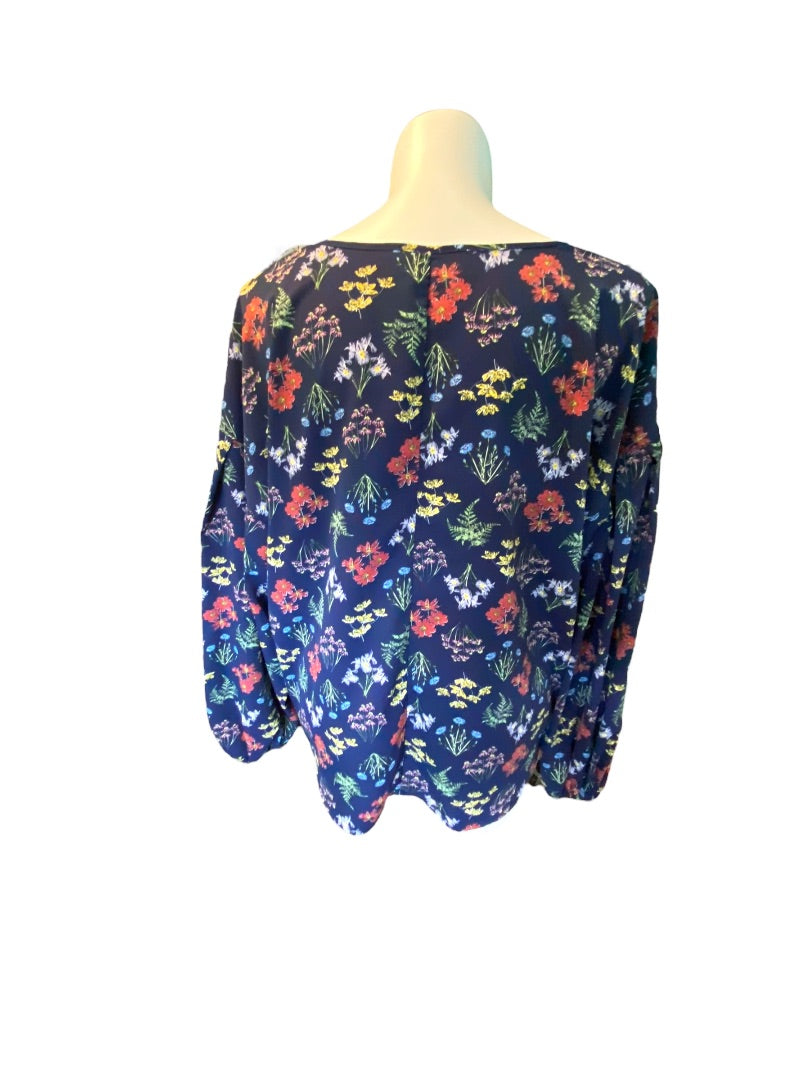 20W Eloquii Elements Navy Floral Tie Neck Blouse Tunic