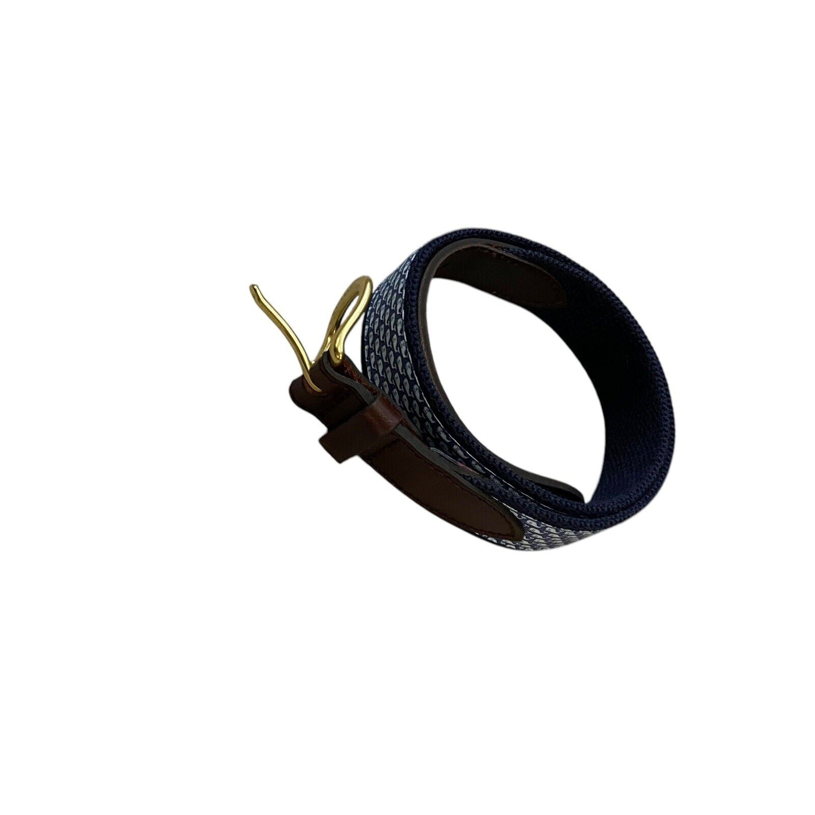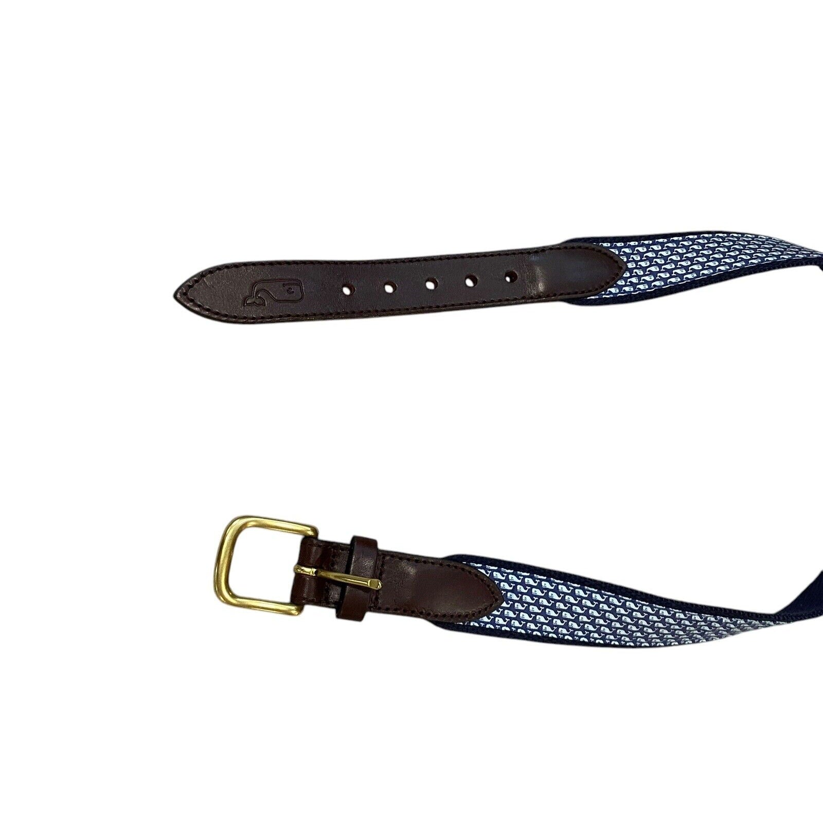 26 Vineyard Vines Whale Fabric Leather Belt Mens Classic Blue