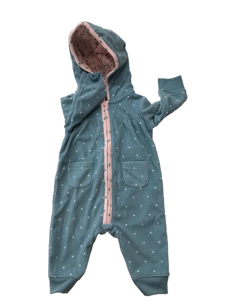 3 Months Carter's Blue Pink Fleece Zip Up One Piece Hooded Fox Polka Dots