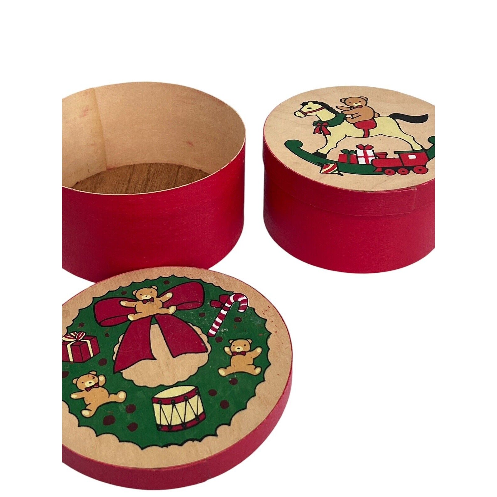 3 Nesting Balsa Wood Boxes Christmas Holiday Gift Lightweight Taiwan Round