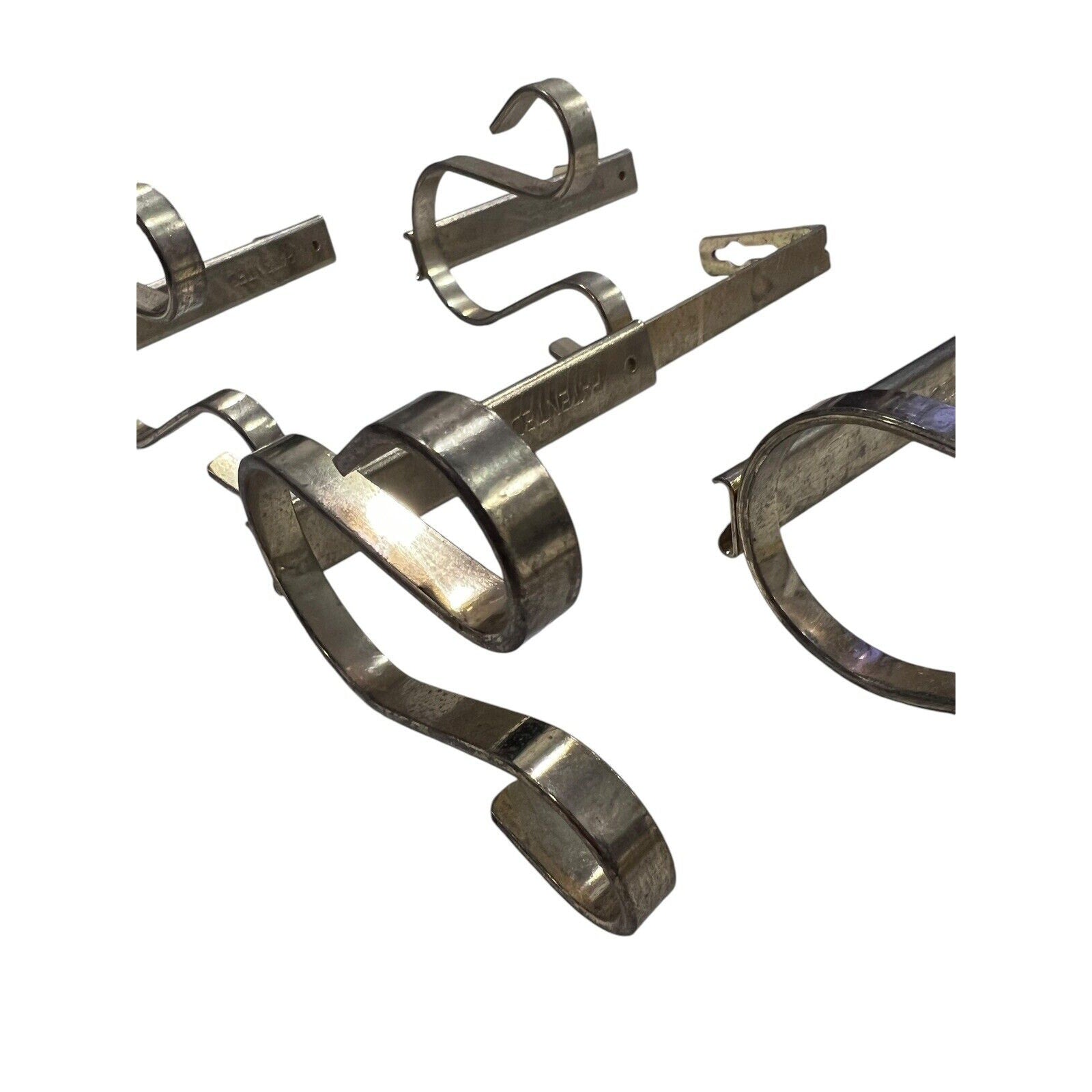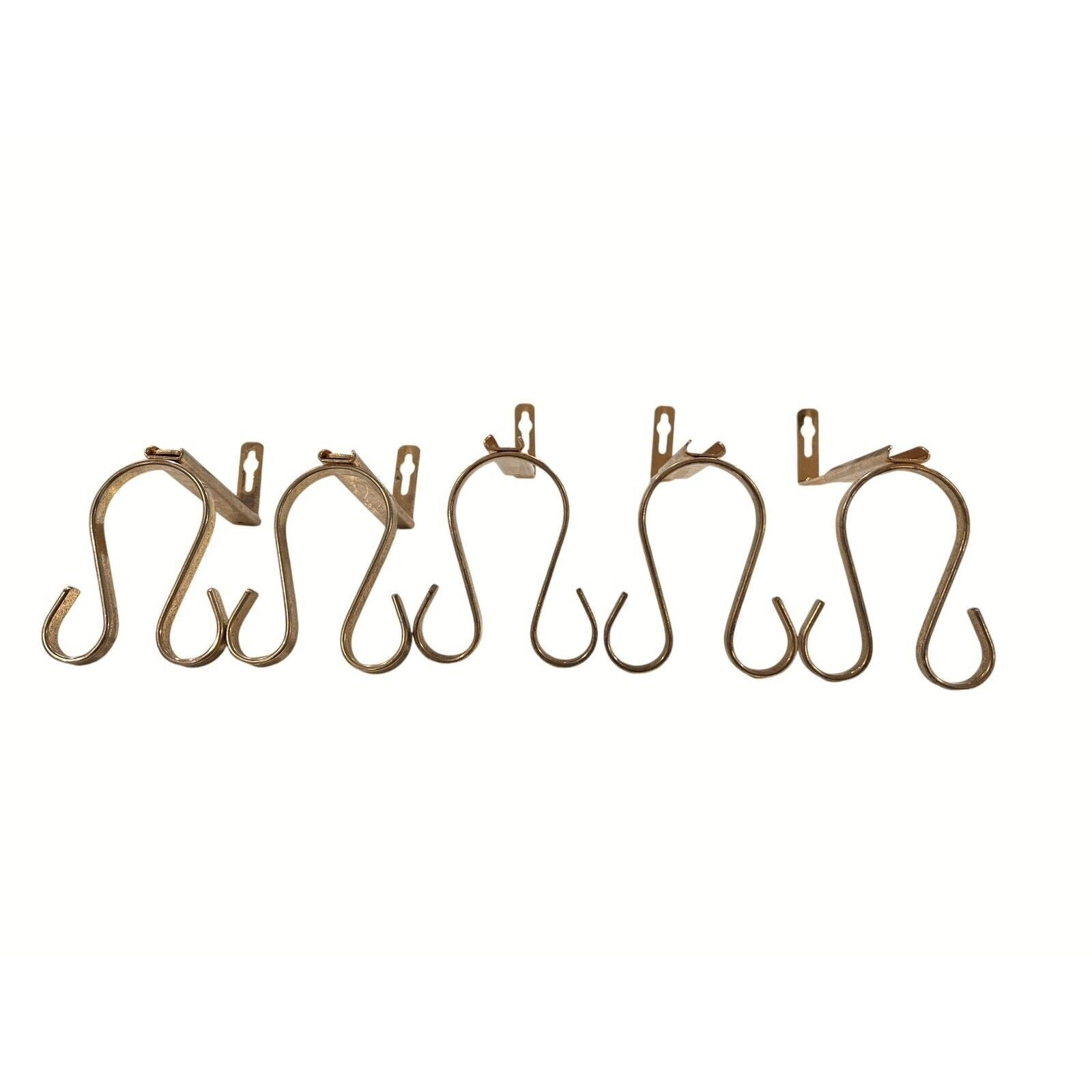 5 Double Gooseneck Swag Drapery Hooks Hook Rosettes Bishop Sleeve Brass Tone Set