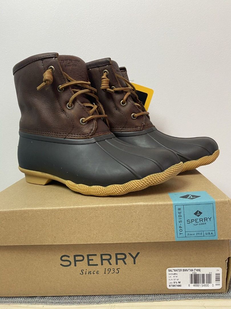 6 .5 Sperry Top-Sider Women's Saltwater Thin Edge Brown Rainboots Duck Boots NIB
