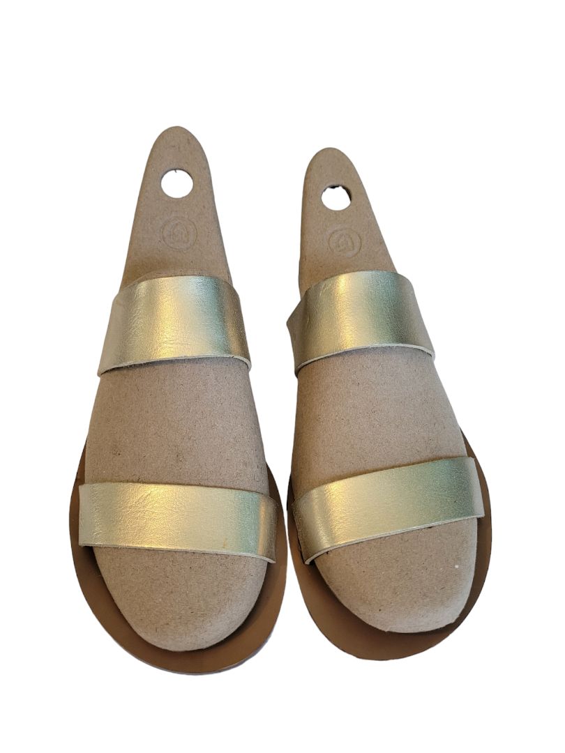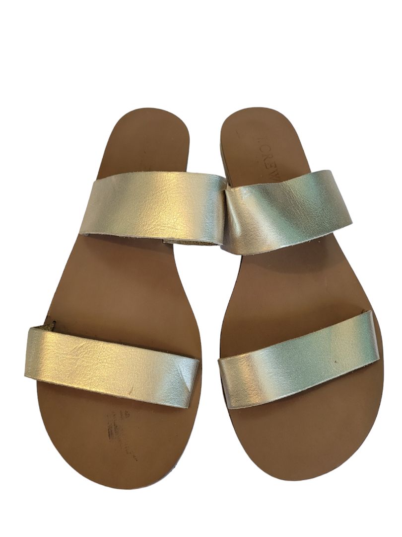 7 J.Crew Women's Gold Leather Metallic Sandals Slip on Two Strap Flat