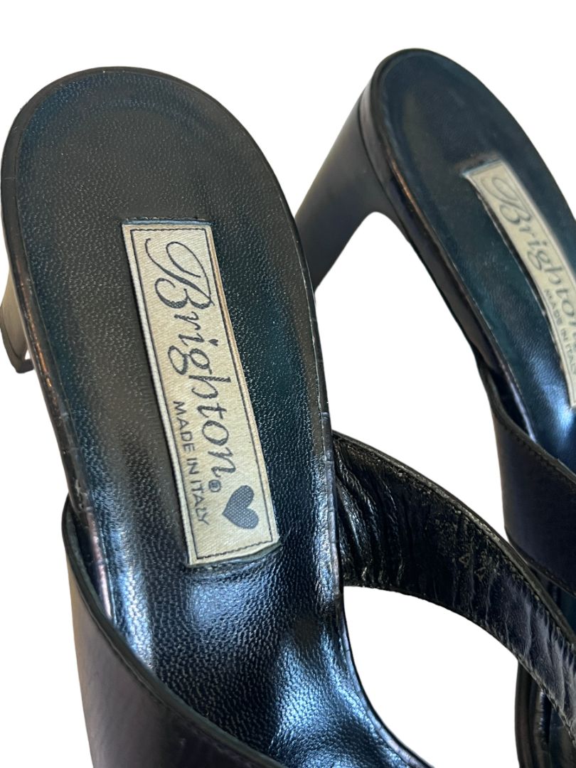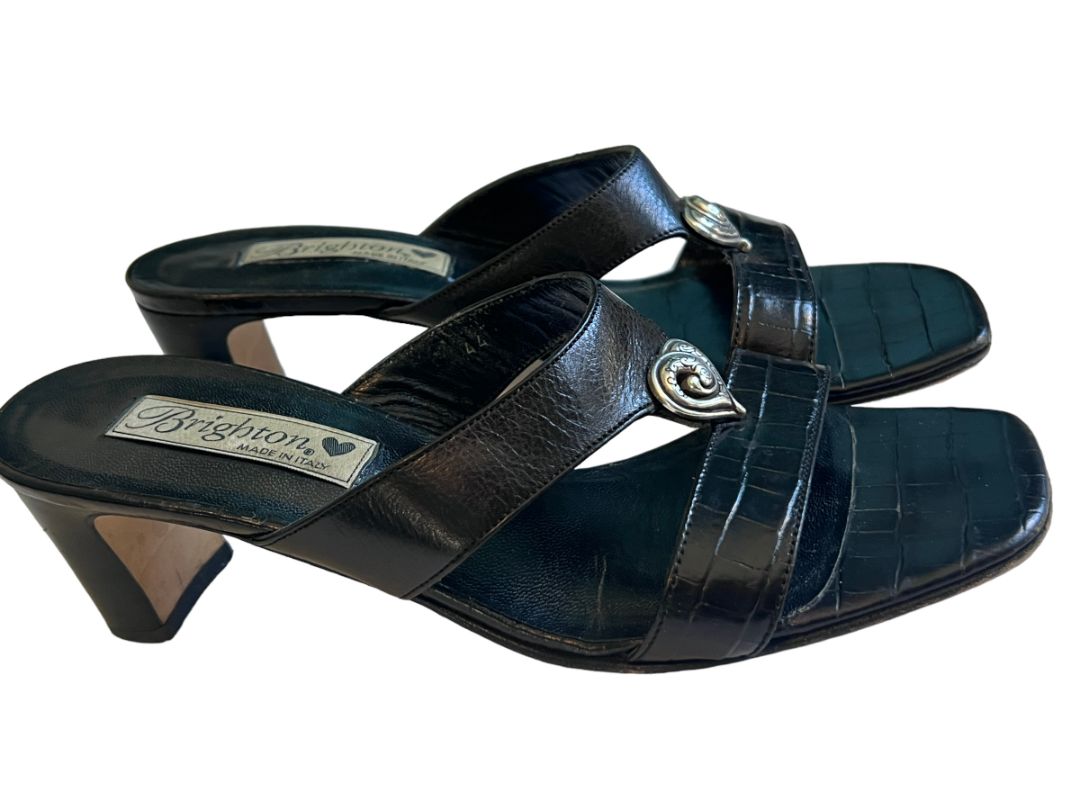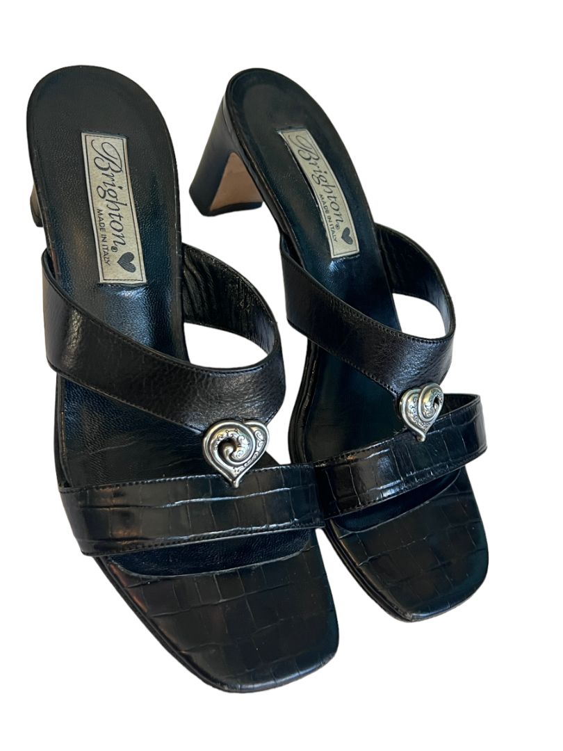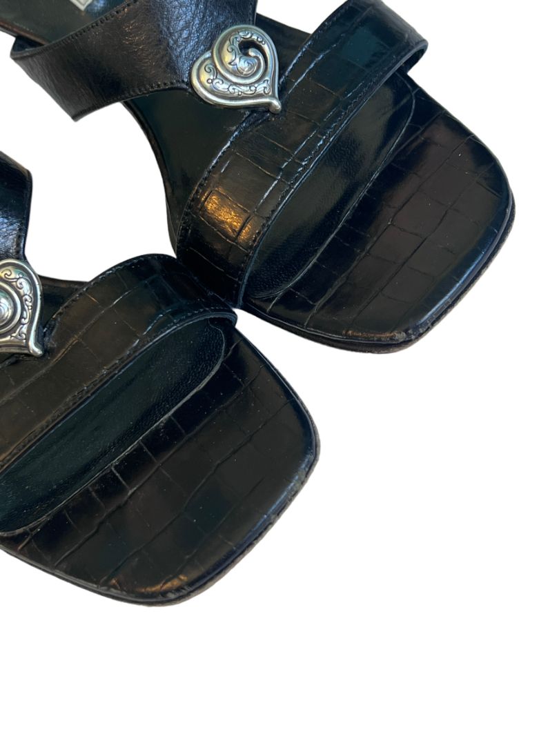 7 M Brighton Trista Shoes Slip-on Block Heels Sandals Black Leather Open Toe
