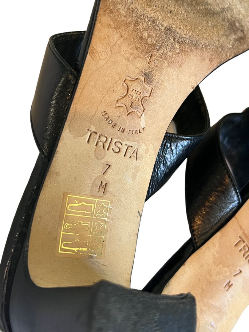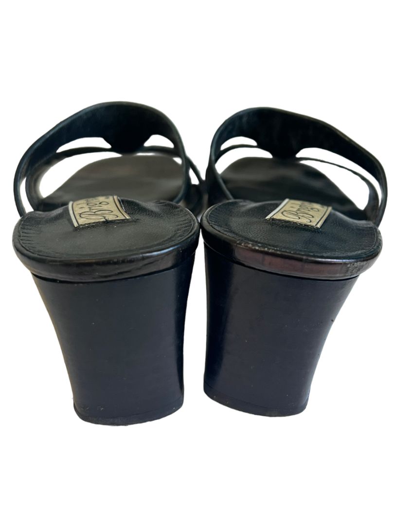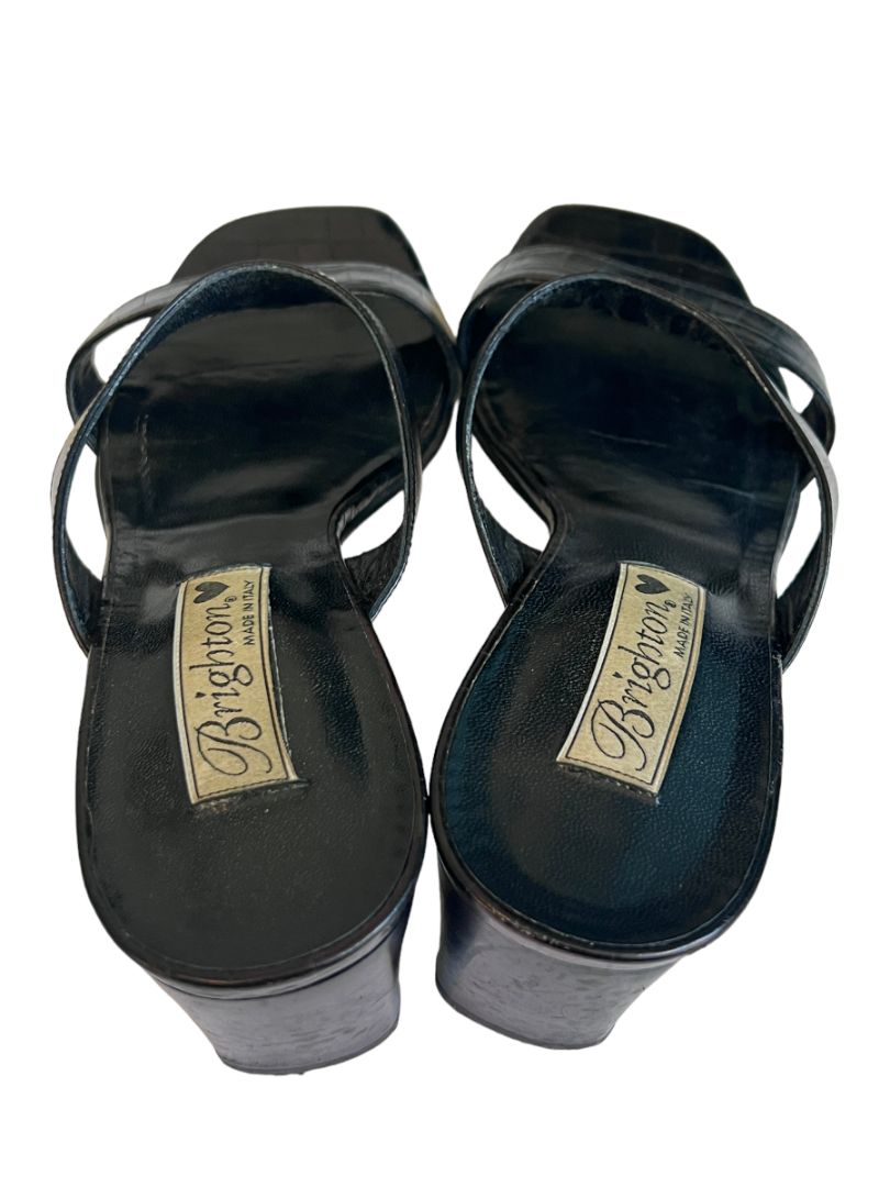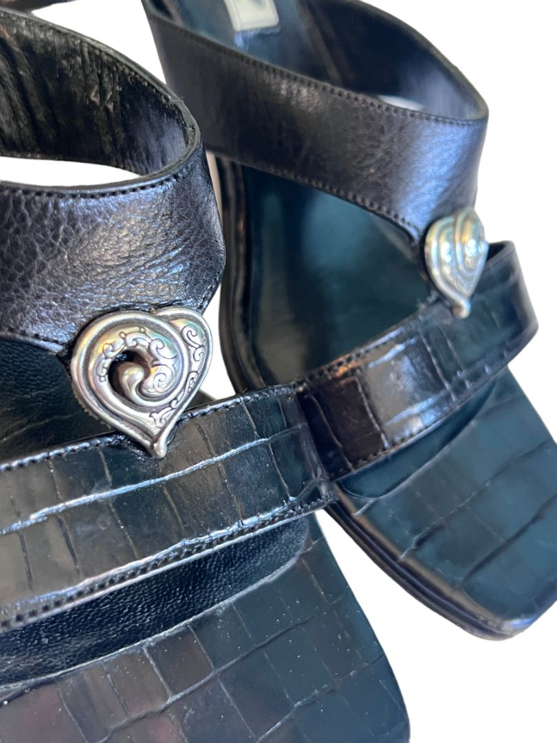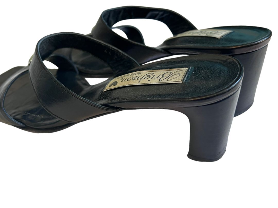 7 M Brighton Trista Shoes Slip-on Block Heels Sandals Black Leather Open Toe