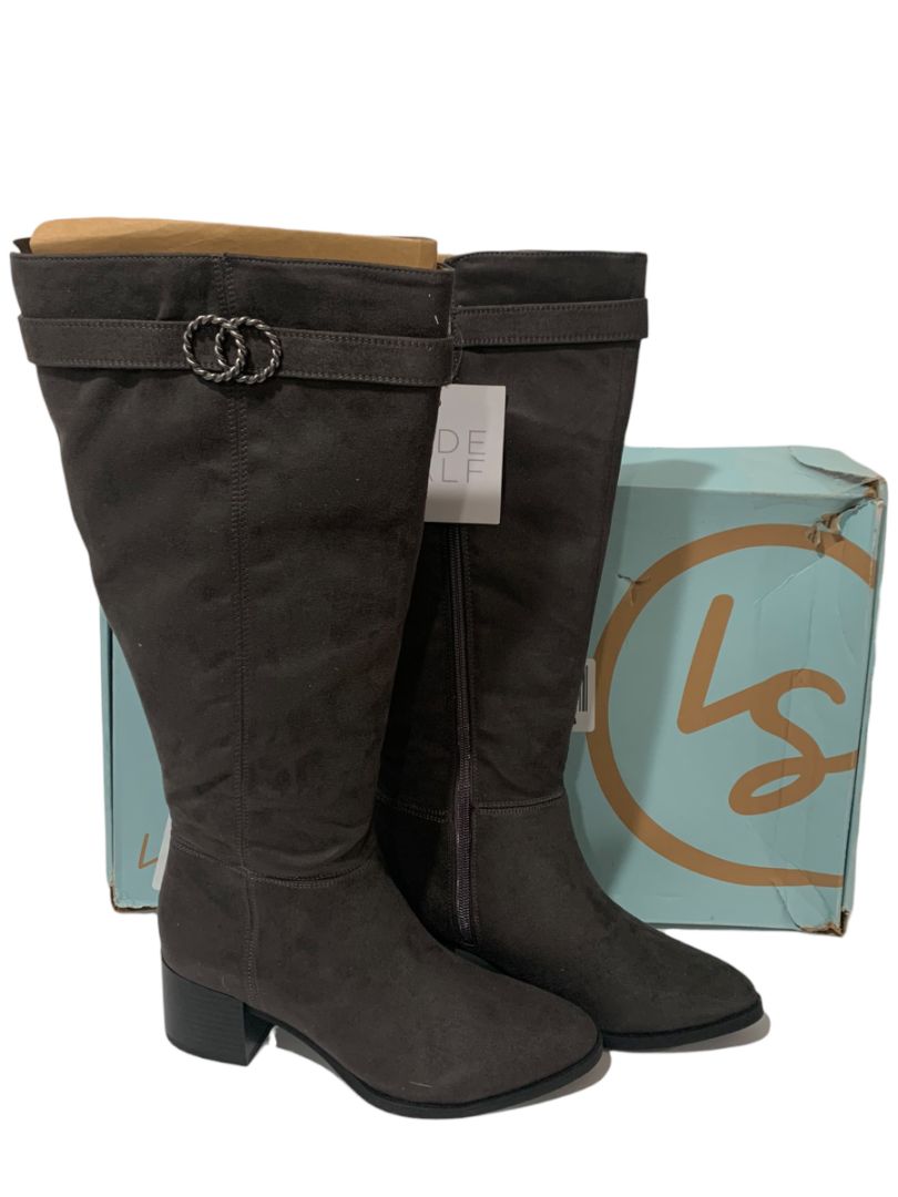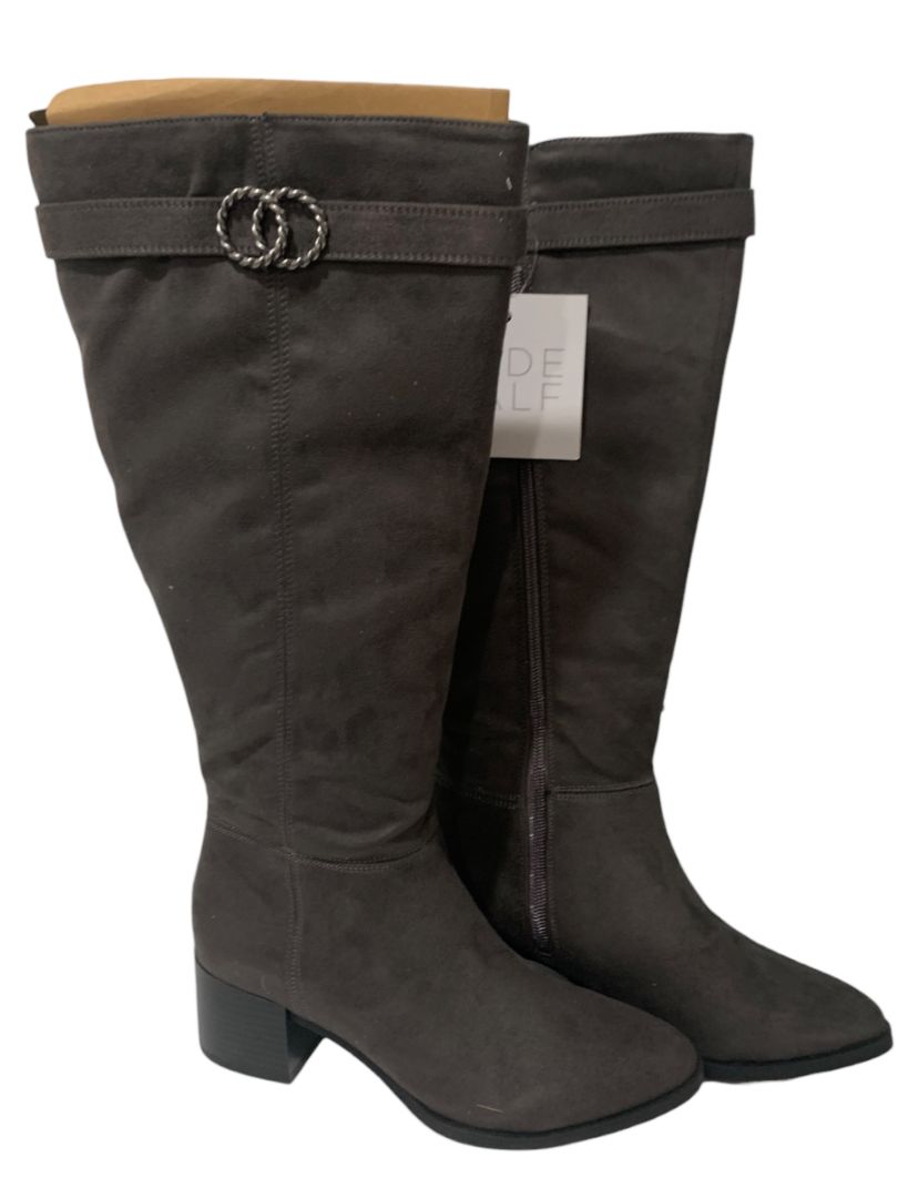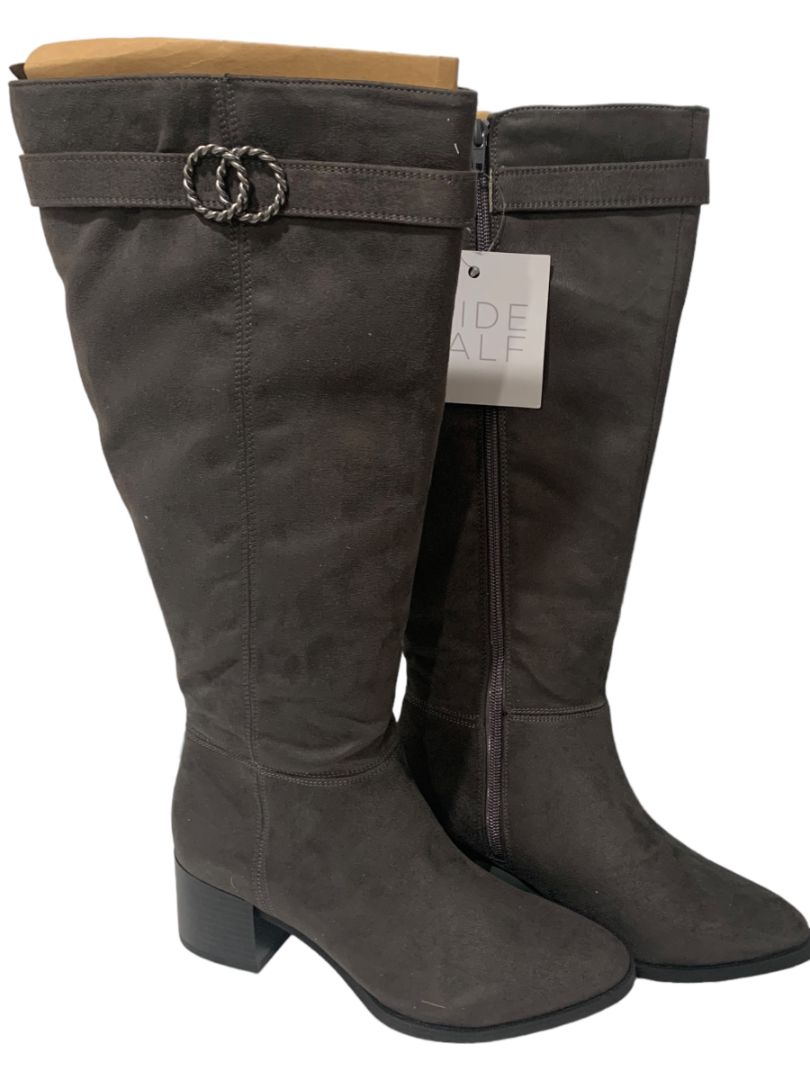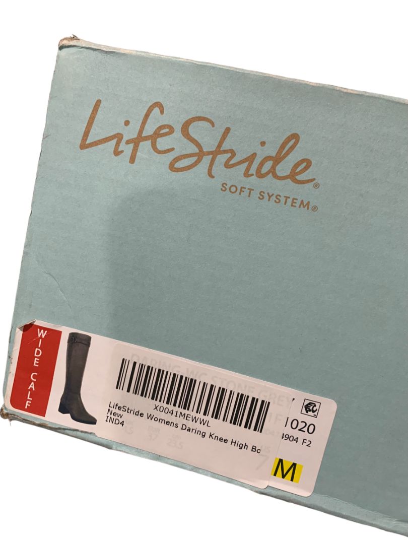 7M Wide Calf LifeStride Soft System New Womens Gray Faux Suede Boots Daring Knee High