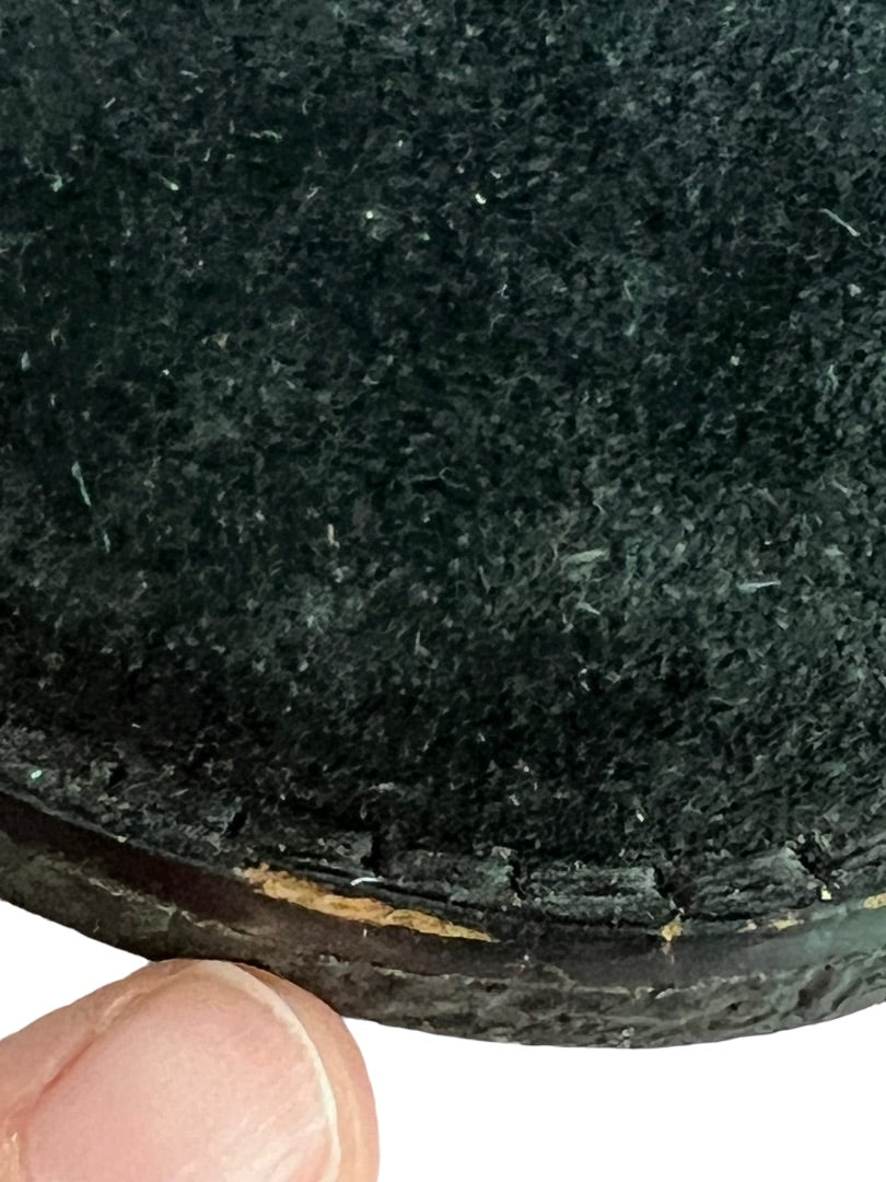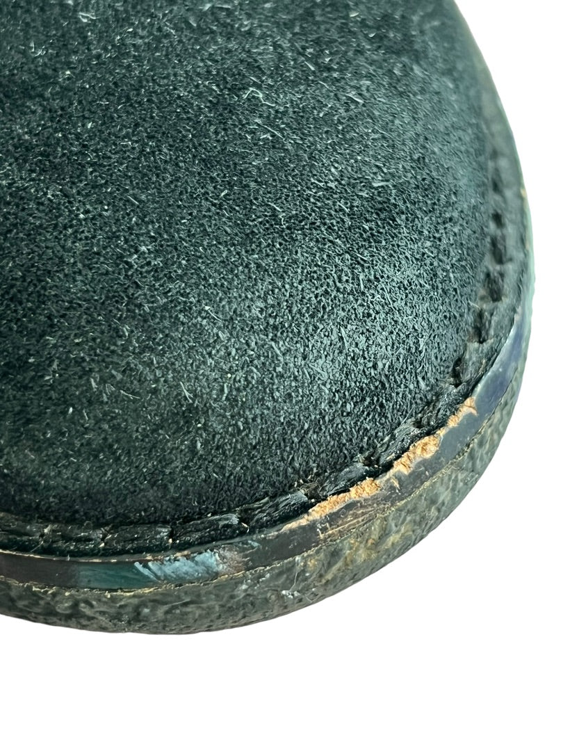 These booties are peeling in interior and priced accordingly. Also, some "chips" on wood layer between Suede and rubber sole SEE PHOTOS