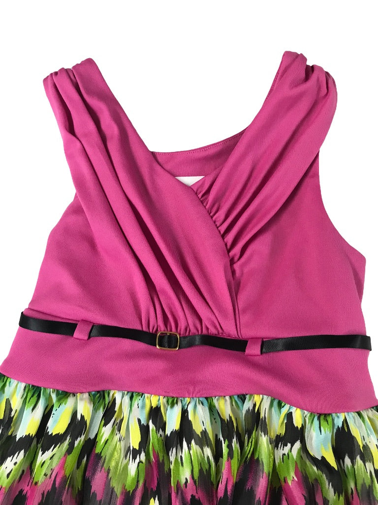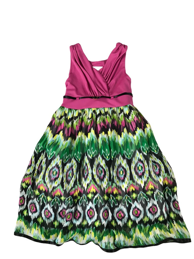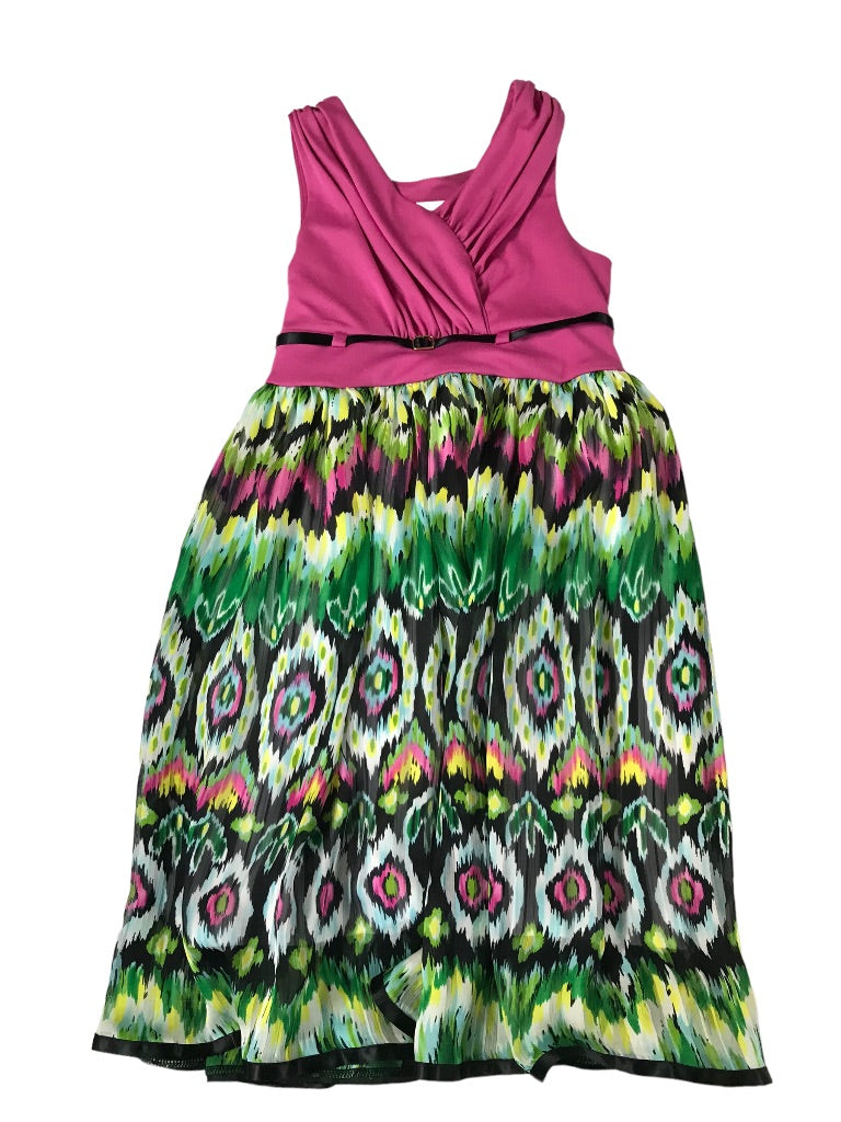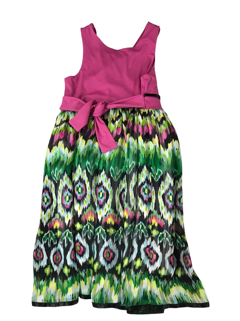 8 Bonnie Jean Girls Lined Pink Dress Sleeveless Abstract Design Green Skirt