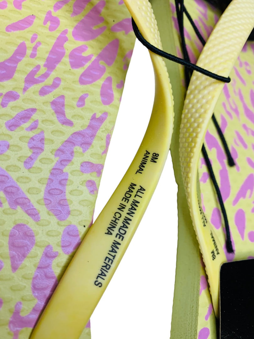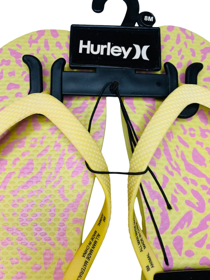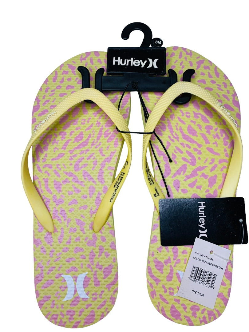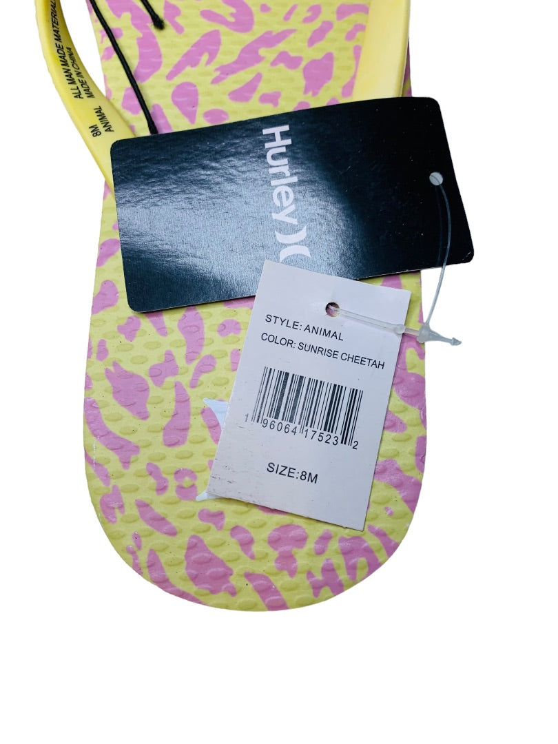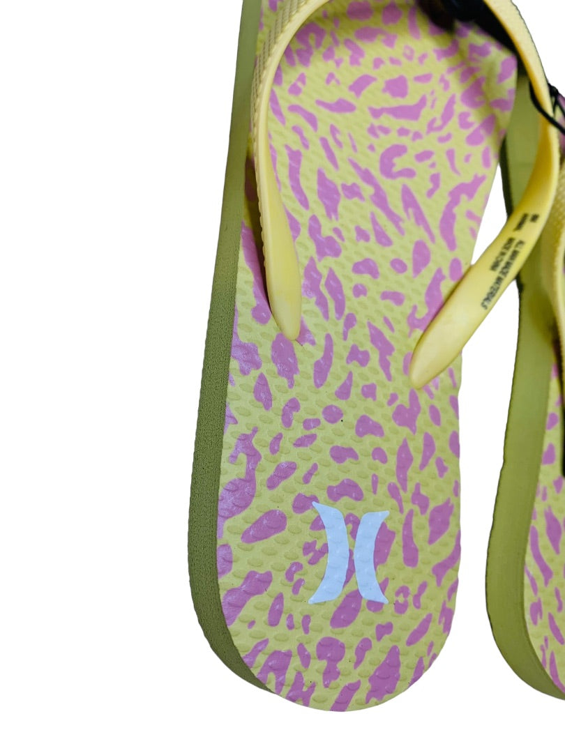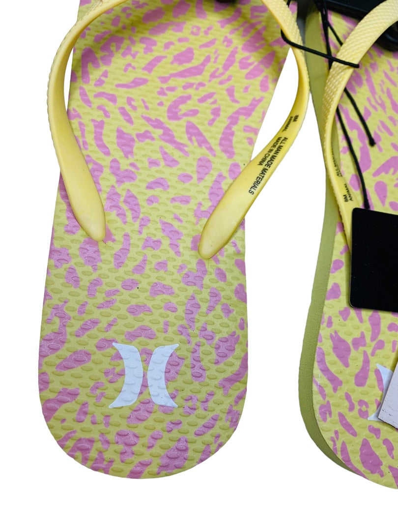 8M Hurley Womens New Animal Flip Flops Yellow Pink Cheetah Sunrise